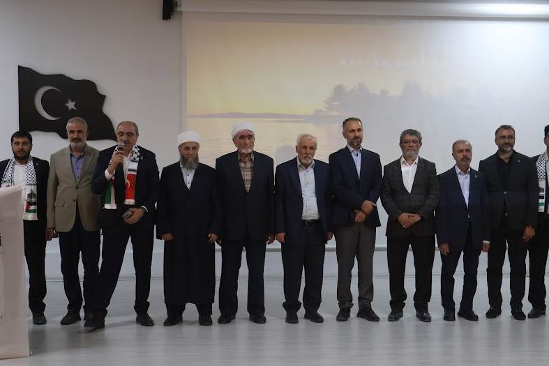 Konuşmacılardan Prof. Dr. M.Halil Çiçek konuşmalarına Gazze için mücadele eden başta Gazze halkına, mücahitlere ve Dünya genelinde onlara maddi ve manevi destekte bulunanlara muhabbet ve şükranlarını sunarak başladı