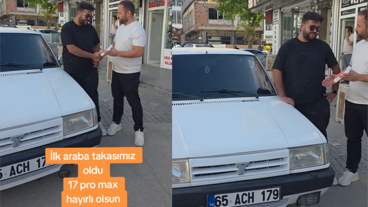 Mağazadan iPhone 17 almak isteyen bir vatandaş telefon ile sahip olduğu aracı takas etti. Tekno Veysel hesabı tarafından paylaşılan o görüntü kısa sürede büyük ilgi gördü. Tofaş marka aracını verip iPhone modelini alan vatandaş ile pazarlığı paylaşan hesap kısa sürede en çok izlenen paylaşımlar arasına girdi.