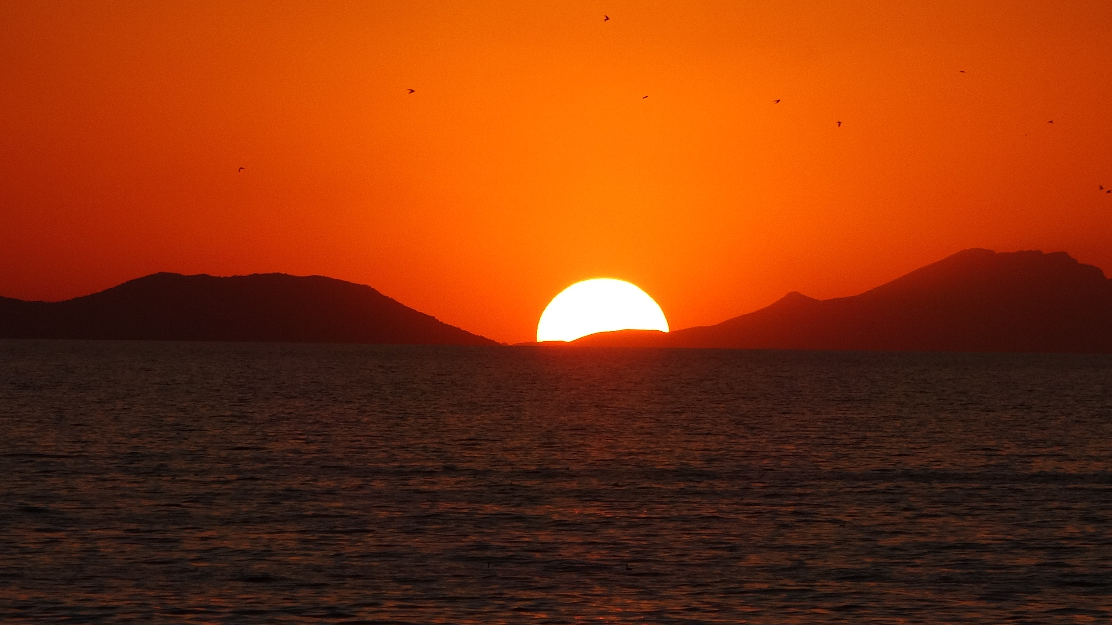 Güneşin Van Gölü üzerinde kızıllığa bürünerek batışı, kent sakinleri ve fotoğraf tutkunlarına eşsiz kareler yakalama fırsatı verdi.