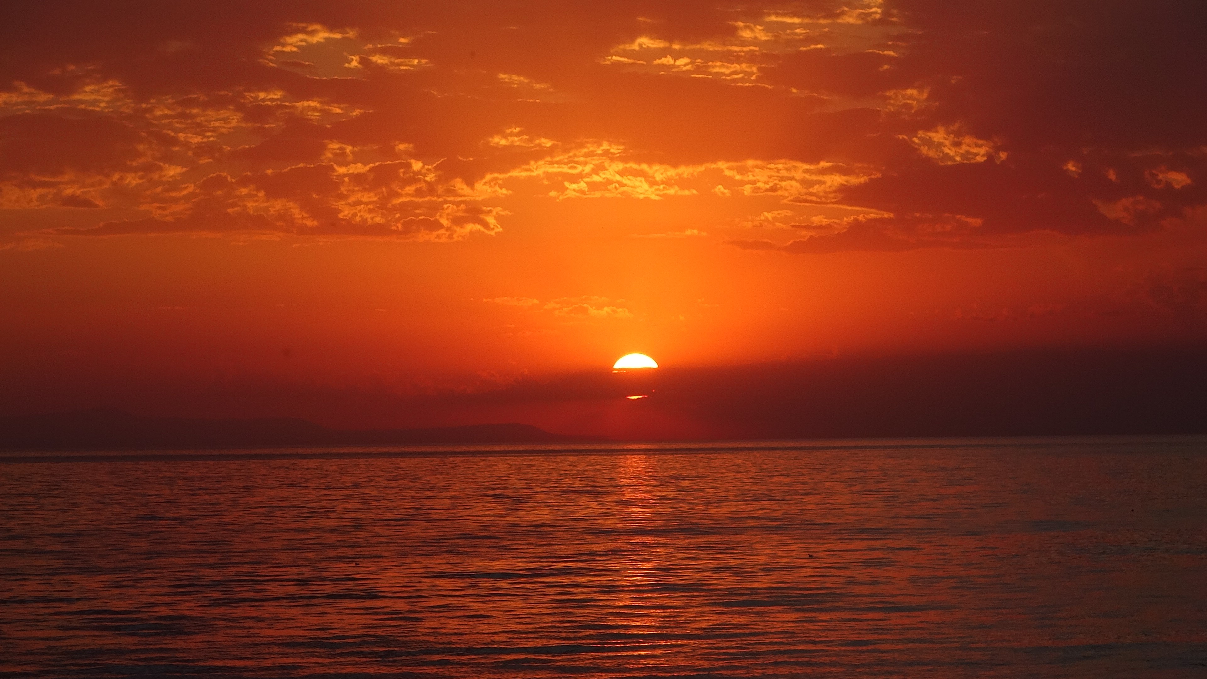 Van Gölü üzerinde kızıla bürünen güneşin batımı ve hemen ardından ufukta yükselen dolunay, vatandaşlara görsel bir şölen sundu.