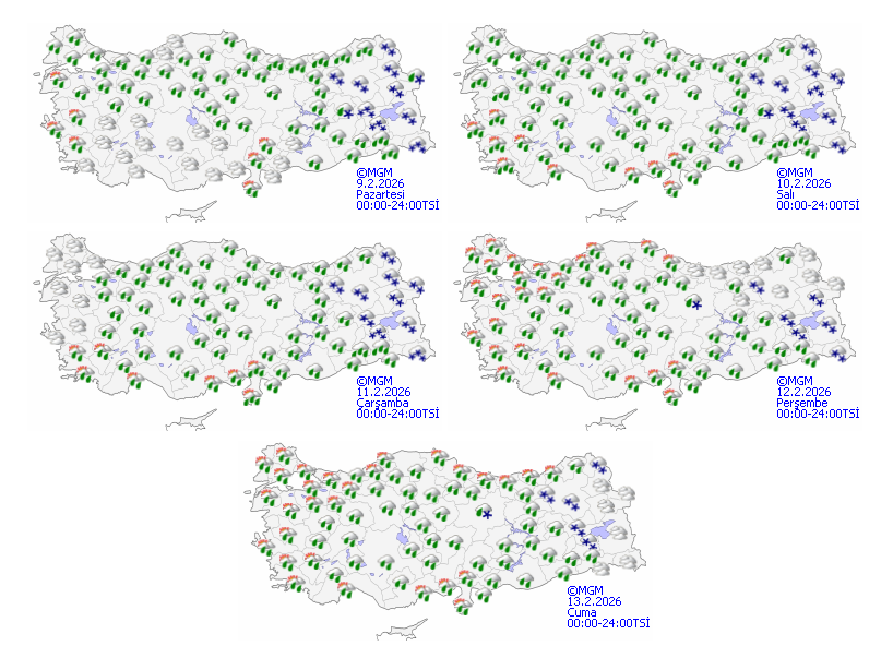 Öğle saatlerine kadar Muş, Bitlis ve Hakkari çevreleri ile Van'ın güney (Bahçesaray, Çatak, Gevaş, Gürpınar ve Başkale) ve kuzey (Erciş, Çaldıran, ve Muradiye) ilçelerinde aralıklarla kuvvetli karla karışık yağmur ve kar yağışı şeklinde olacağı tahmin edilmektedir. Kuvvetli yağışlarla birlikte, yüksek kesimlerde tipi şeklinde kar yağışı, kar savrulması, görüş mesafesinde azalma, düşük rakımlarda kuvvetli yağış ve kar erimeleri sonucu su baskını, sel, heyelan ve kaya düşmesi ile ulaşımda aksamalar gibi olumsuzluklara karşı dikkatli ve tedbirli olunmalıdır.