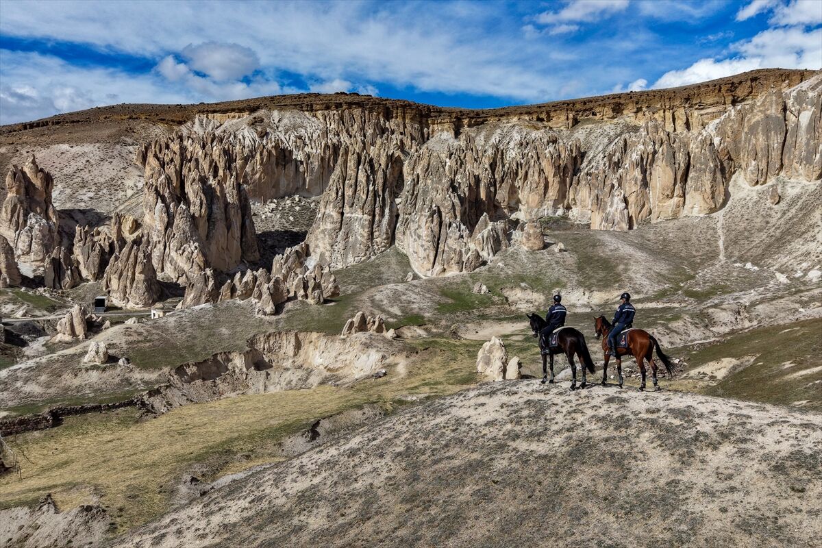 Volkanik Yiğit Dağı'nın püskürtülerini yağmur suyu ve rüzgarın aşındırmasıyla ortaya çıkan kaya oluşumları, 35 mağara ve 12 oyma evin bulunduğu bölge, yöre halkı tarafından "Vanadokya" olarak adlandırılıyor. İlkbahar ve yaz aylarında çok sayıda yerli ve yabancı turisti ağırlayan "Vanadokya"da güvenliği sağlamak ve turistik yapıları korumak için Van İl Jandarma Komutanlığı bünyesinde oluşturulan atlı tim devriye faaliyeti yürütüyor. Peribacalarının olduğu vadi ve tepelik alanları dolaşan atlı ekipler, ziyaretçilere yapılara zarar verilmemesi ve kurallara uyulması konusunda uyarılarda bulunuyor. Atlı jandarma timi sayesinde bölgede huzurla zaman geçiren ziyaretçiler, çocuklarıyla atları seviyor, jandarma personeliyle fotoğraf çektiriyor.