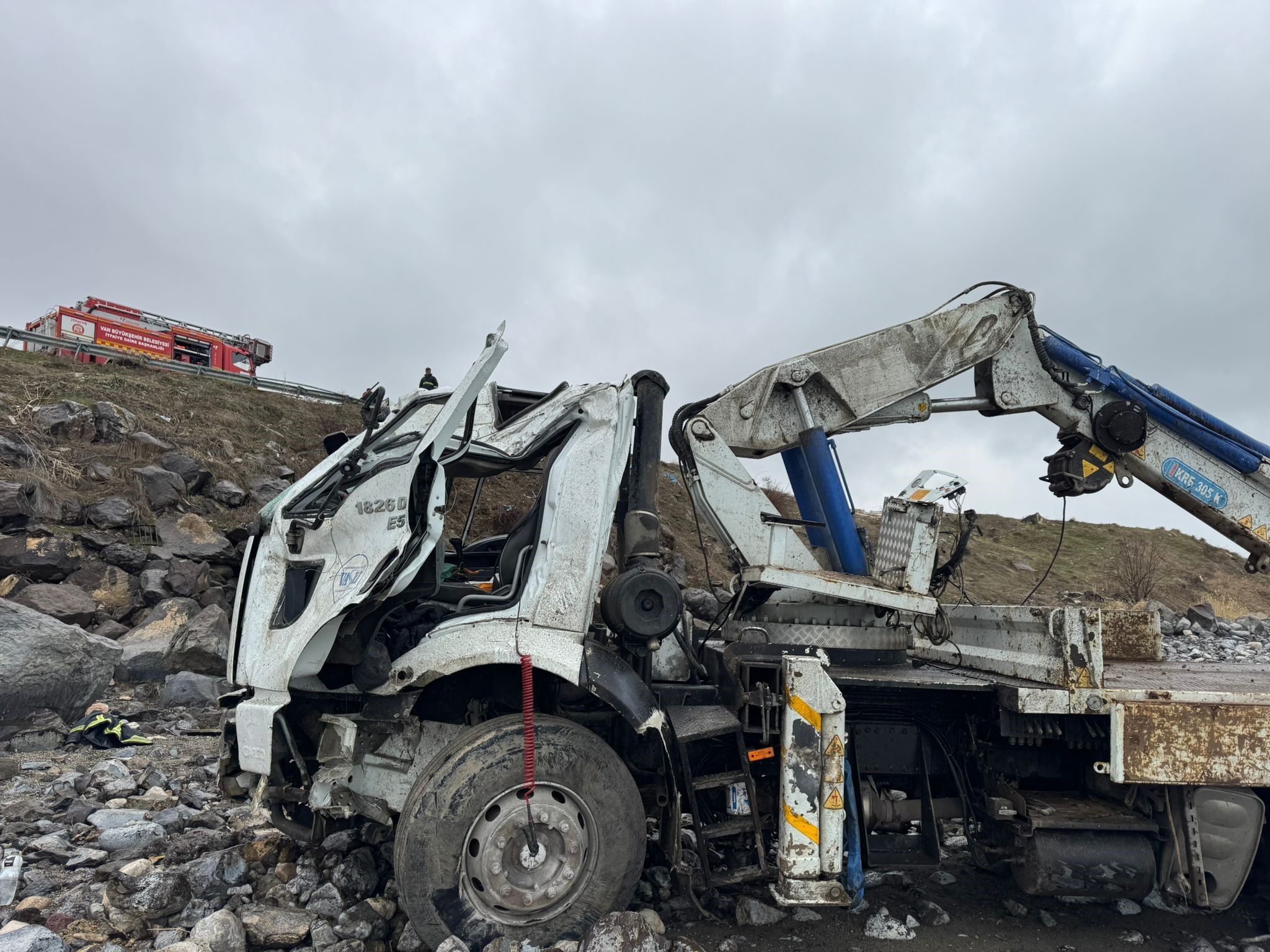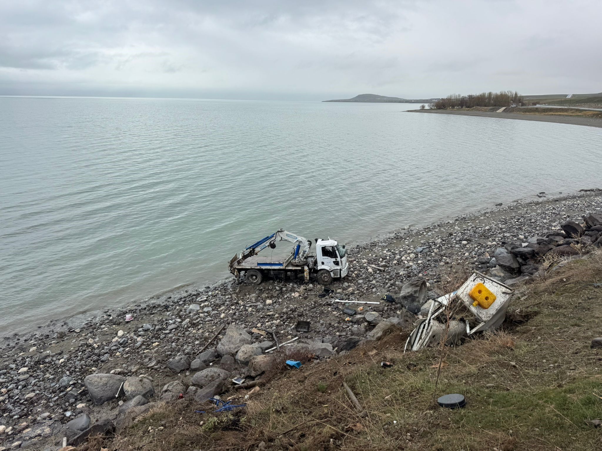 Van Büyükşehir Belediyesi'ne bağlı Van Su ve Kanalizasyon İdaresi (VASKİ) Genel Müdürlüğü'ne ait içme suyu ekibini taşıyan hizmet aracı kontrolden çıkarak Van Gölü’ne uçtu. Kazada 1 kişi yaralandı.