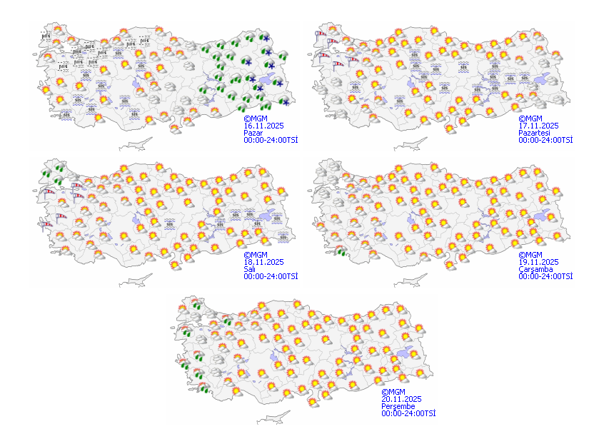 Parçalı ve çok bulutlu, yağmur ve karla karışık yağmurlu, yüksekleri kar yağışlı. Yağışların güneyinde kuvvetli olması bekleniyor.