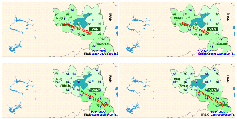 Bölge genelinde havanın parçalı ve çok bulutlu, aralıklı yağmur ve karla karışık yağmurlu, yükseklerde ise kar yağışı şeklinde olması beklenmektedir. Yağışların Bitlis, Muş, Hakkari ve Van'ın güney ilçelerinde zaman zaman kuvvetli yağmur ve karla karışık yağmur yüksek kesimlerinde ise kuvvetli kar şeklinde olacağı tahmin edilmektedir.