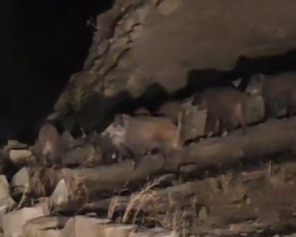 Van'ın Başkale ilçesinde mahalleye inerek yiyecek arayan domuz sürüsü görüntülendi. Başkale ilçesine 50 kilometre uzaklıkta bulunan İran sınırındaki kırsal Esenyamaç Mahallesi'ne akşam saatlerinde yaban domuzu sürüsü indi.