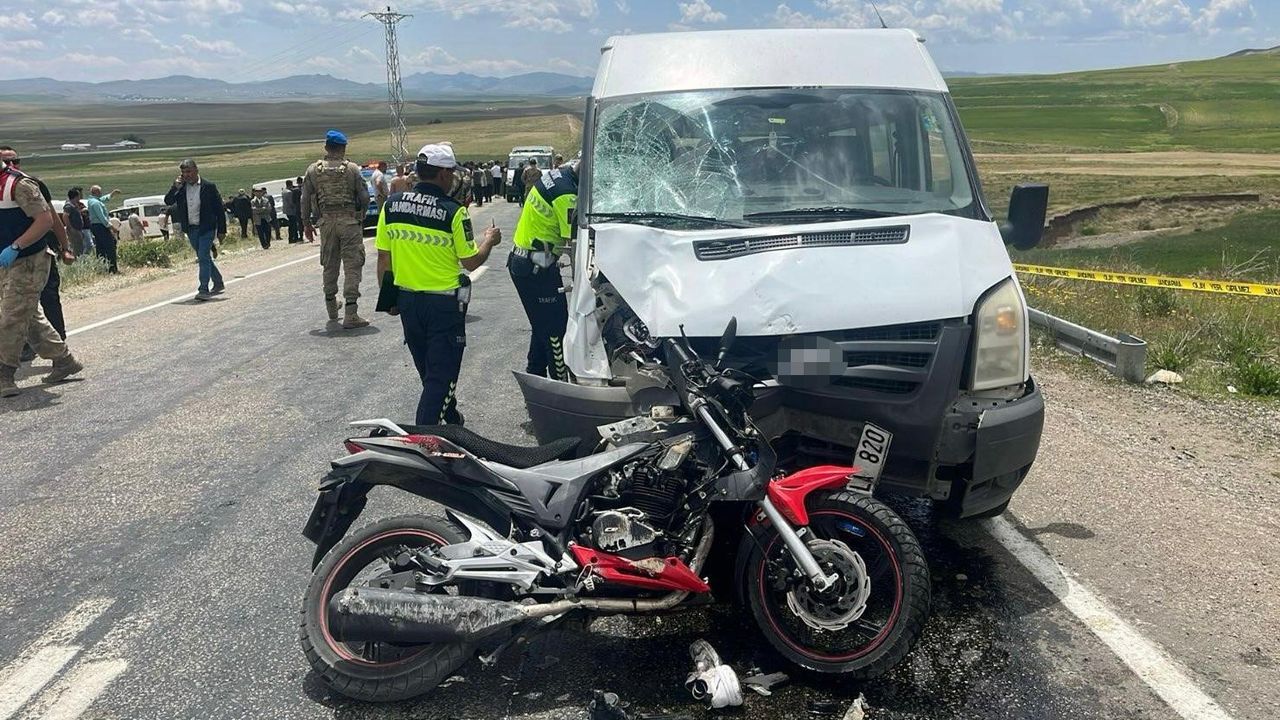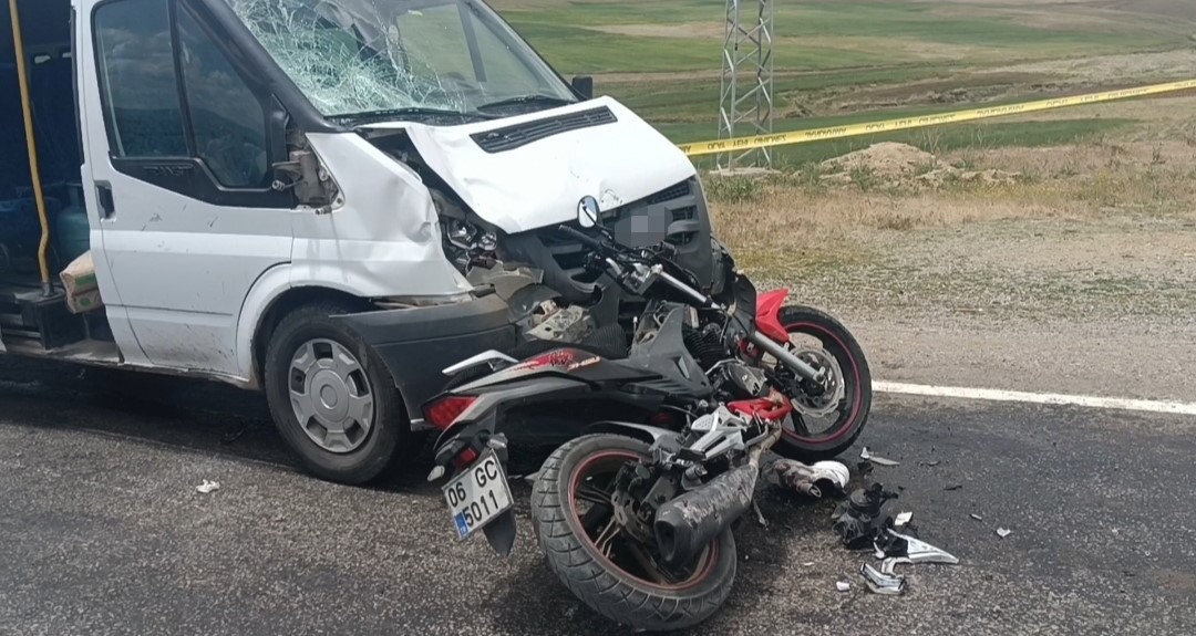 MİNİBÜS İLE MOTOSİKLET KAFA KAFAYA ÇARPIŞTI
