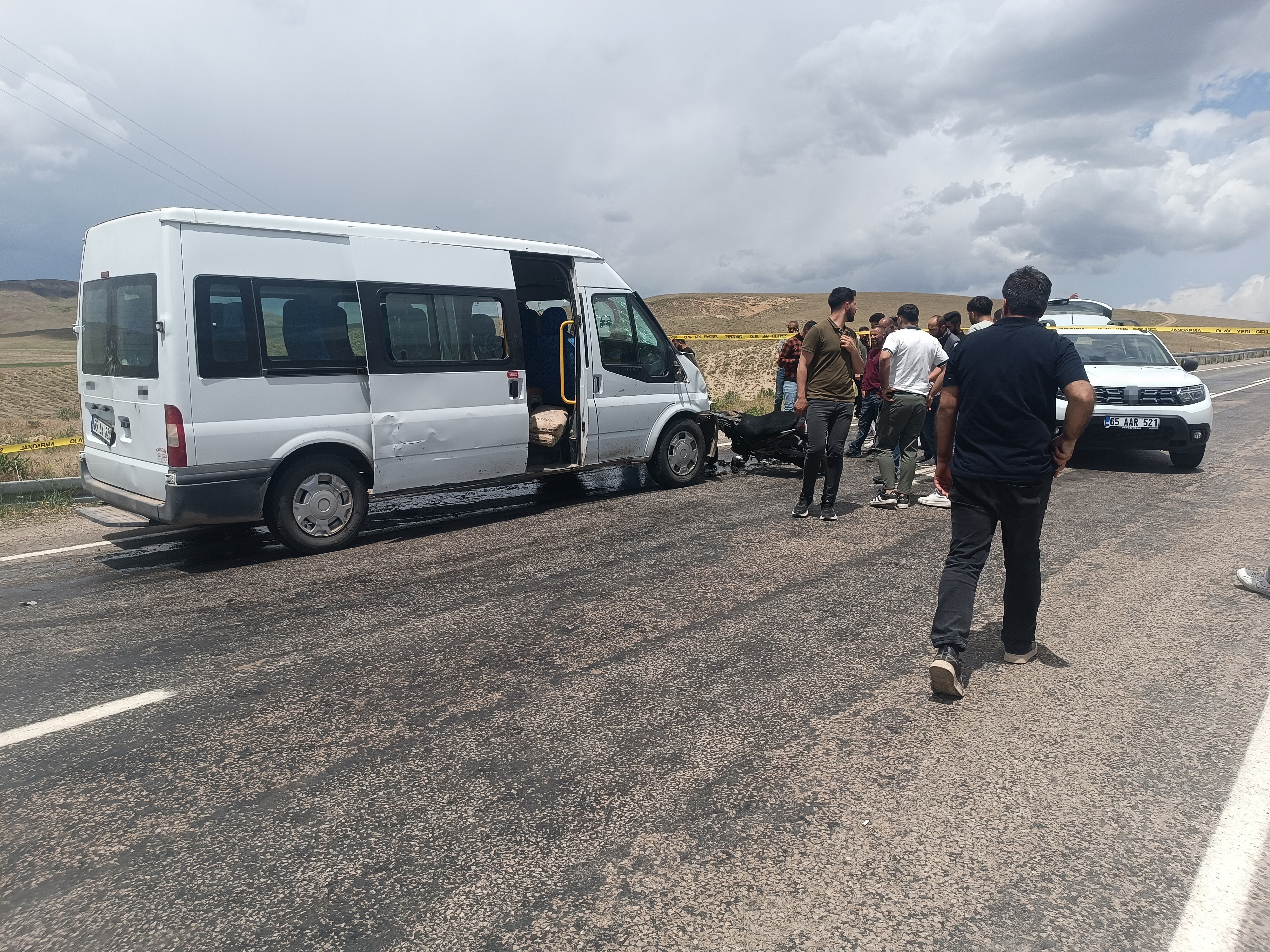 Davut Elmas yönetiminde 06 GG 5011 plakalı motosiklet ile Sultan Şahin yönetiminde 65 LA 820 plakalı minibüs kafa kafaya çarpıştı. Haber verilmesi üzerine bölgeye ambulans ve jandarma ekipleri sevk edildi.