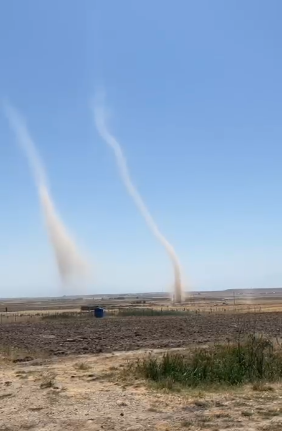 Köyün farklı noktalarından da net bir şekilde görülen hortumlar, birkaç dakika boyunca etkisini sürdürdü. Vatandaşlar, karşılaştıkları bu sıra dışı manzarayı cep telefonlarıyla kayda aldı. Görüntülerde, yan yana yükselen iki dev hortumun gökyüzüne doğru uzandığı anlar yer aldı.