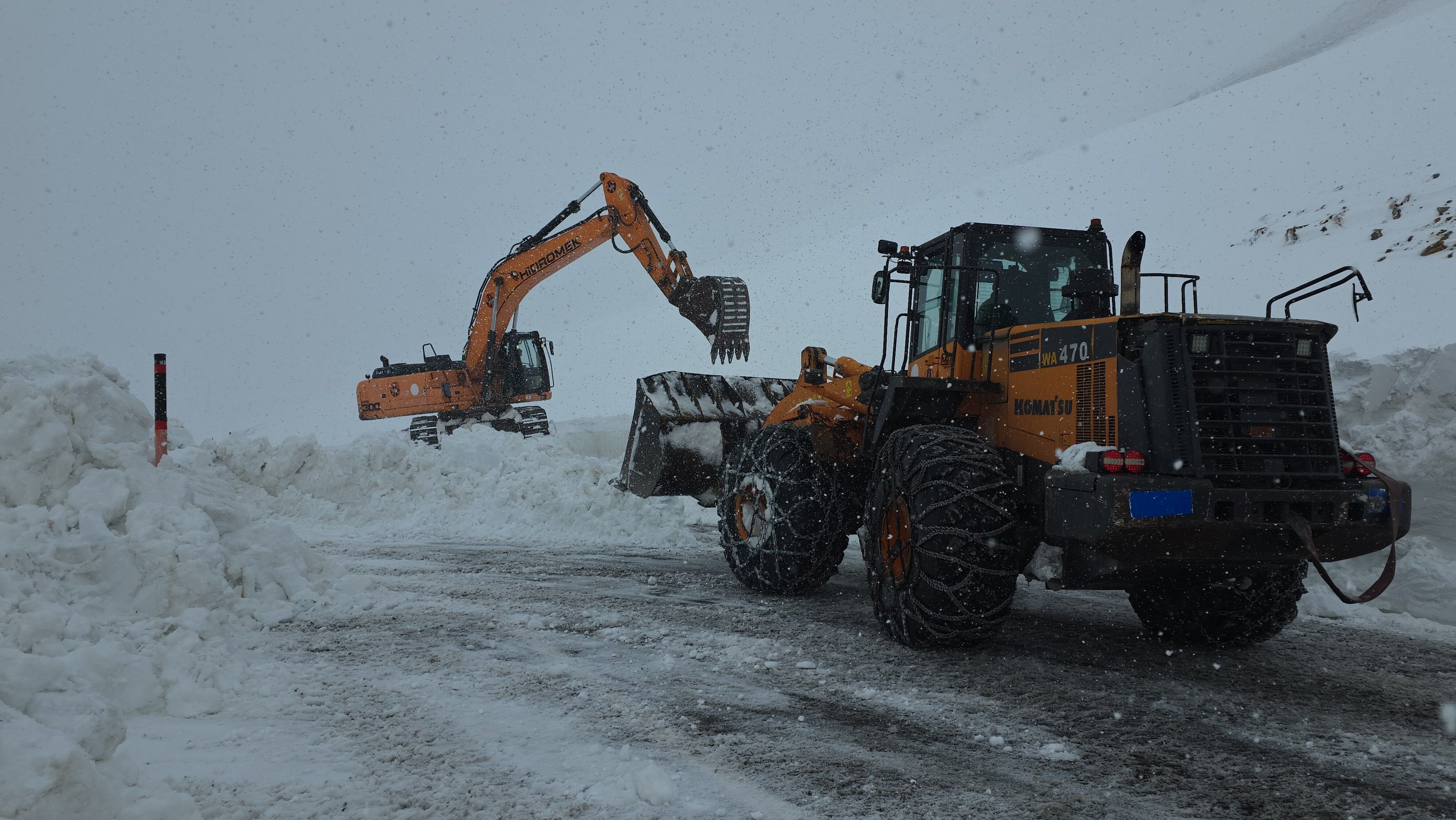 Van'ın Bahçesaray ilçesine ulaşımı sağlayan ve yaklaşık 3,5 aydır kapalı olan 3 bin rakımlı Karabet Geçidi'nde çalışmalar yoğun kar yağışı altında devam ediyor. 4 metreye yaklaşan kar kalınlığı ve yoğun yağış altında yol için mücadele ediyor.