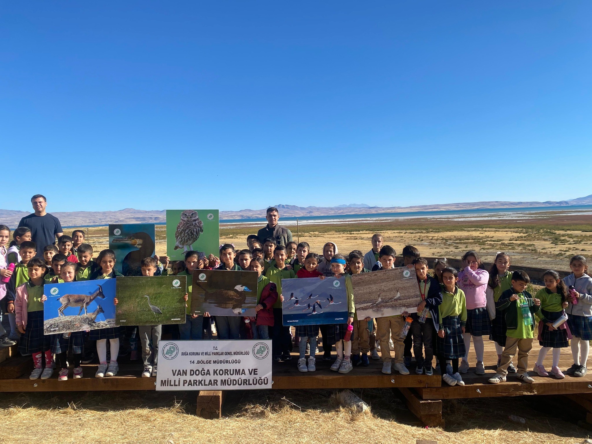 DKMP 14. Bölge Müdürlüğü’ne bağlı Erciş Şube Müdürlüğü ekipleri, "Tabiat Turizmi Uygulama Eylem Planı" kapsamında, Erciş Çelebibağı Vatan İlkokulu öğrencileri ve öğretmenleri ile birlikte Çelebibağı sazlıkları sulak alanında doğa yürüyüşü ve kuş gözlemi etkinliği düzenlendi.
