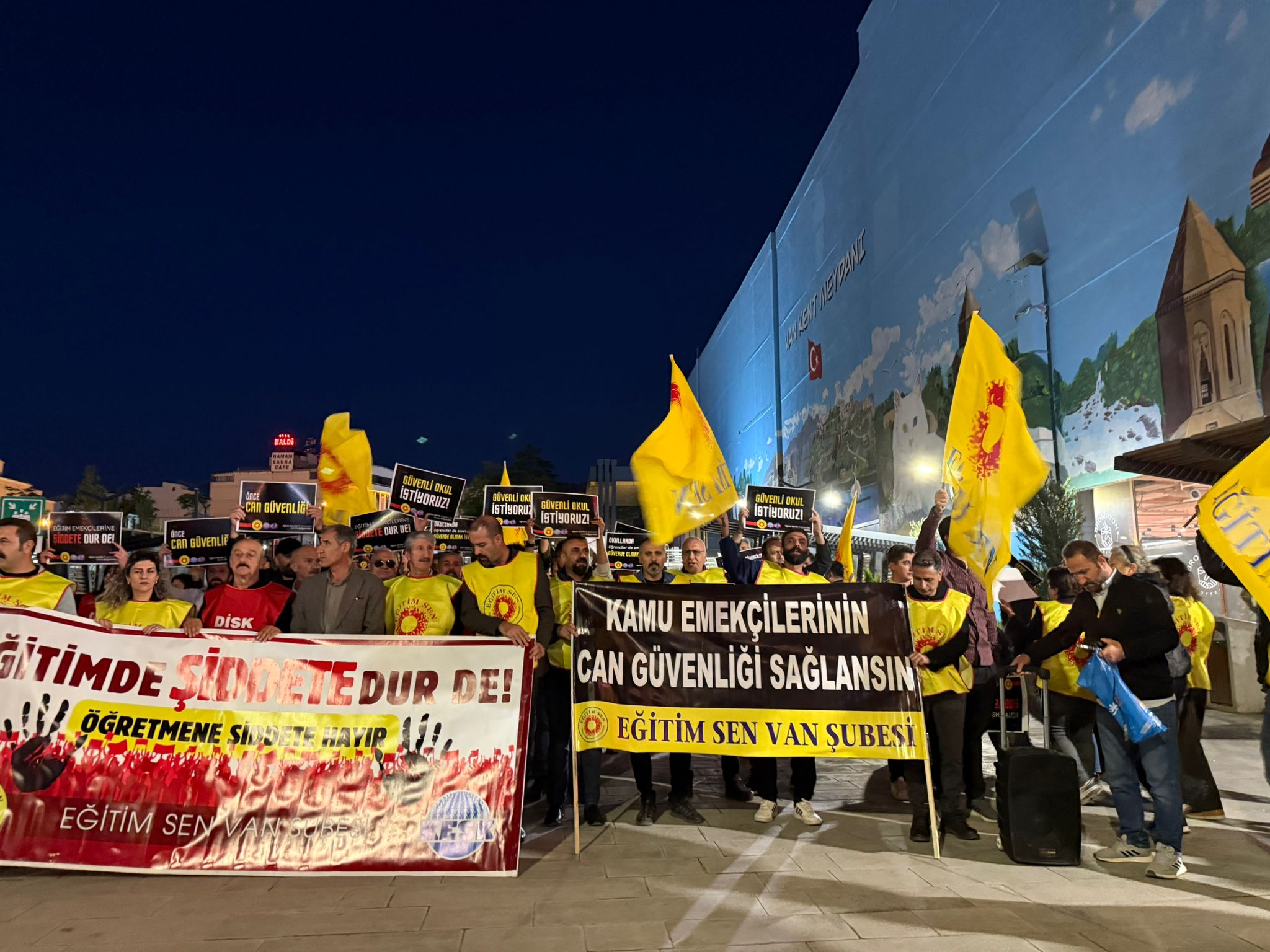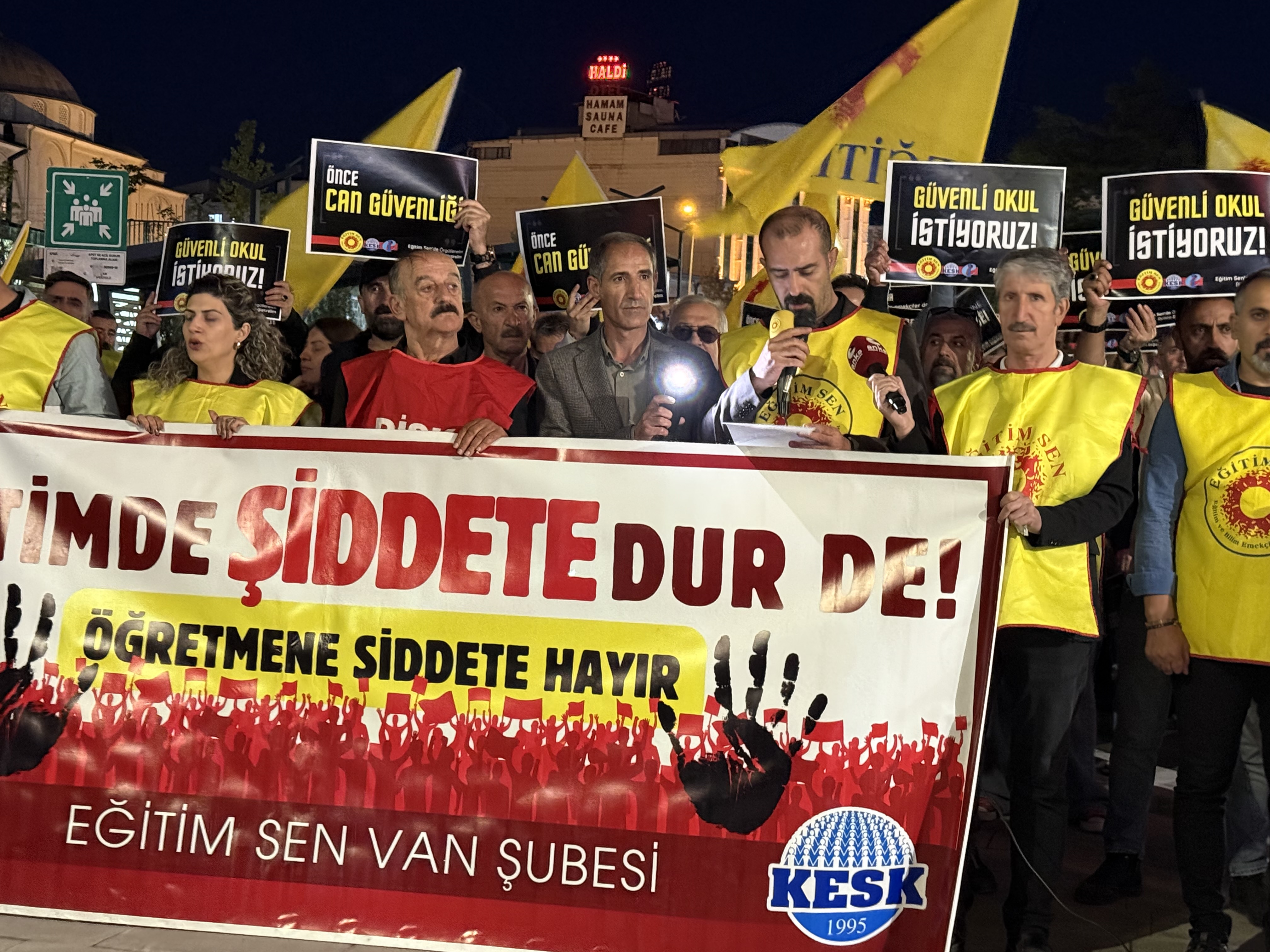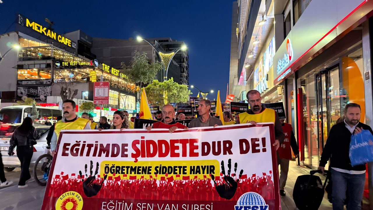 Van’ın İpekyolu ilçesindeki Şehit Kemal Görgülü Ortaokulu’nda 19 Eylül’de bir öğretmene yapılan bıçaklı saldırının ardından, Eğitim Sen Van Şubesi bugün saat 18.30’da Şekerbank önünden Kent Meydanı’na yürüyüş gerçekleştirdi.