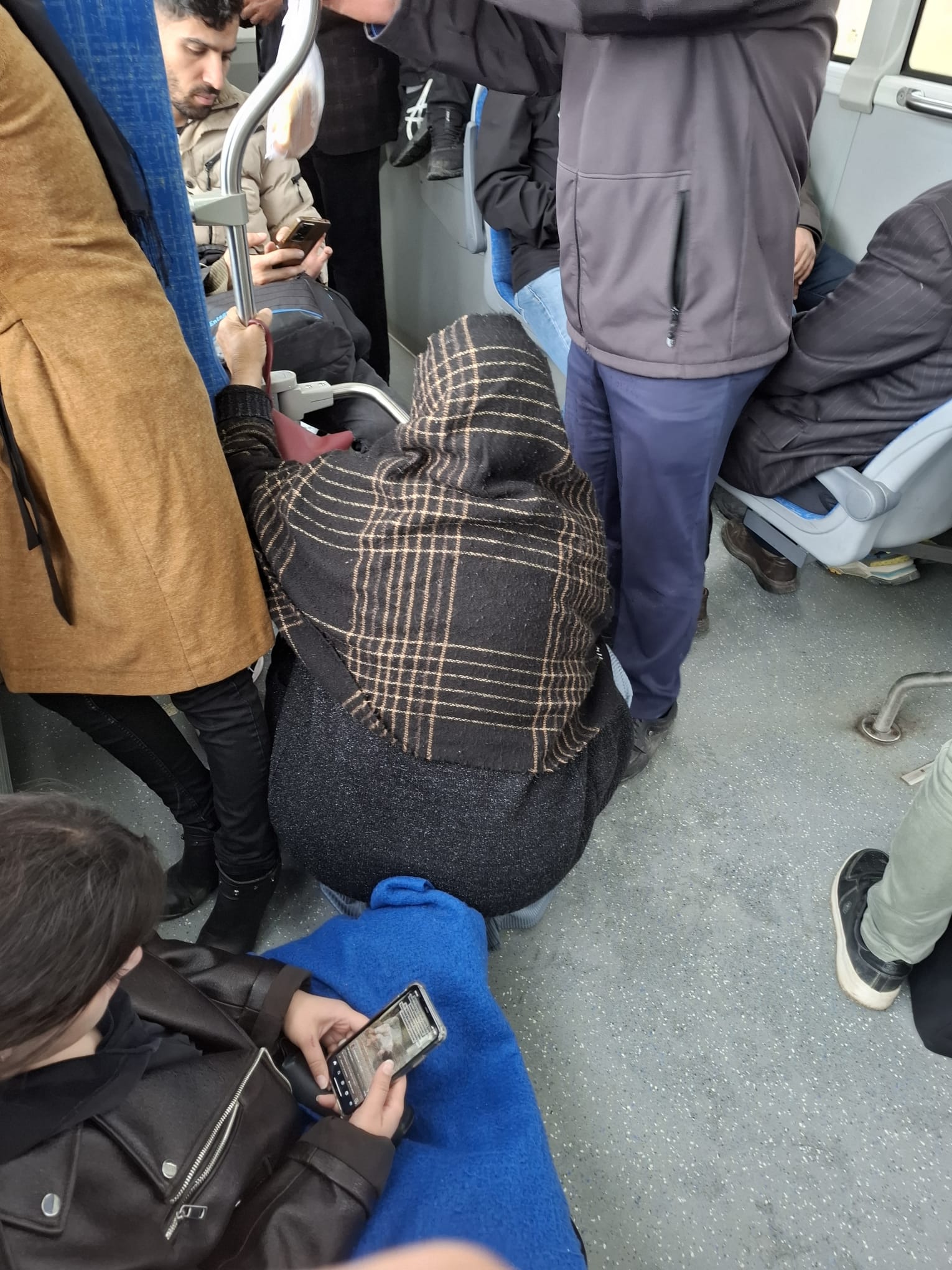 Toplu taşıma araçlarında en büyük sıkıntıyı yaşlılar ve kadınlar yaşıyor. Ayakta yolculuk yapmak zorunda kalan birçok yaşlı, yer bulamadığı için yere oturmak zorunda kalıyor. Görüntülerde, araç içinin tamamen dolu olduğu, bazı yolcuların yere battaniye serip oturduğu dikkat çekiyor.