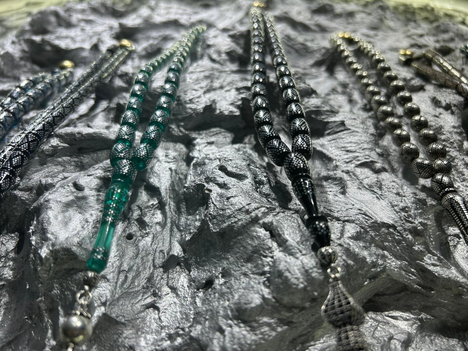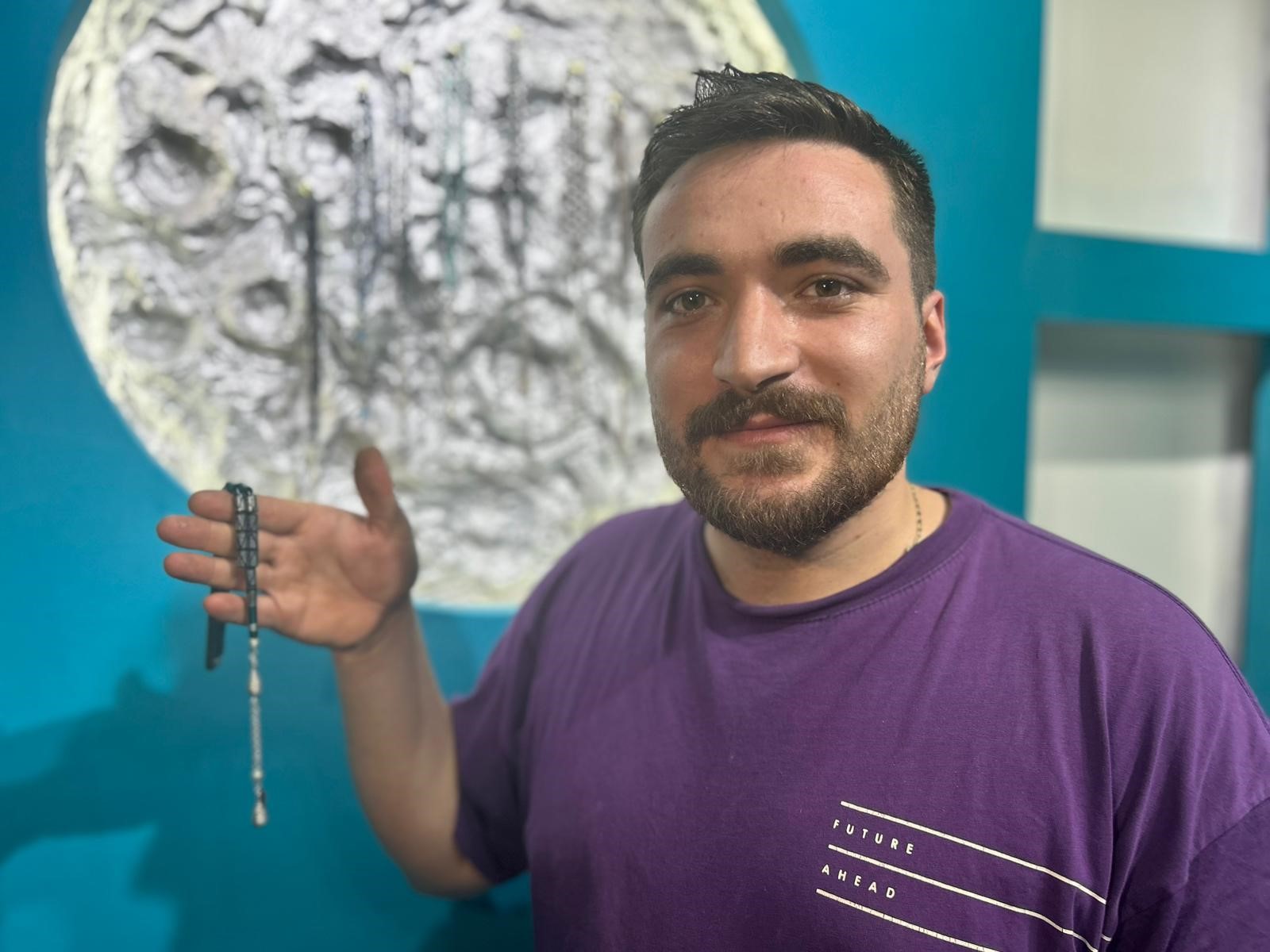 Gümüş ustası Berke Tomar, gümüş kakma sanatının büyük bir sabır, ilgi ve sevgi istediğini belirtti. Ürettiği her tespih boncuğunda emeği olduğunu ifade eden Tomar, "Günümüzde teknolojiden de yararlanarak bu işlemeleri yapıyoruz. Kehribarın üzerine çizim yaptıktan sonra oyma işini tek tek el emeğiyle yapıyoruz. Ardından gümüş tel ile kakma işlemini gerçekleştiriyoruz ve sonrasında zımpara ile cilalama yapıyoruz. Tüm bu işlemler sonucunda kehribar taşlı tespihler bir sanat eserine dönüşüyor" dedi.