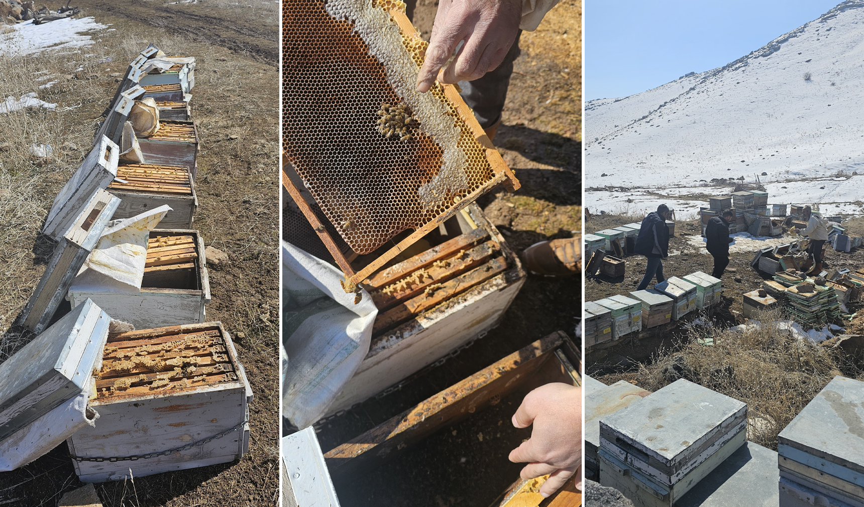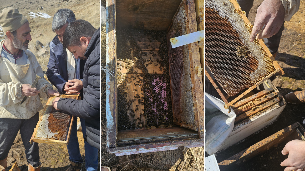 Muradiye ilçesine bağlı Kandahar Mahallesi'nde aşırı soğuklar nedeniyle arılar bal üreticiliği yapan Salih Özdemir, havaların biraz ısınmasıyla birlikte arılarını kontrol etti. Kovanın kapaklarını açan Özdemir, arıların telef olduğunu gördü.