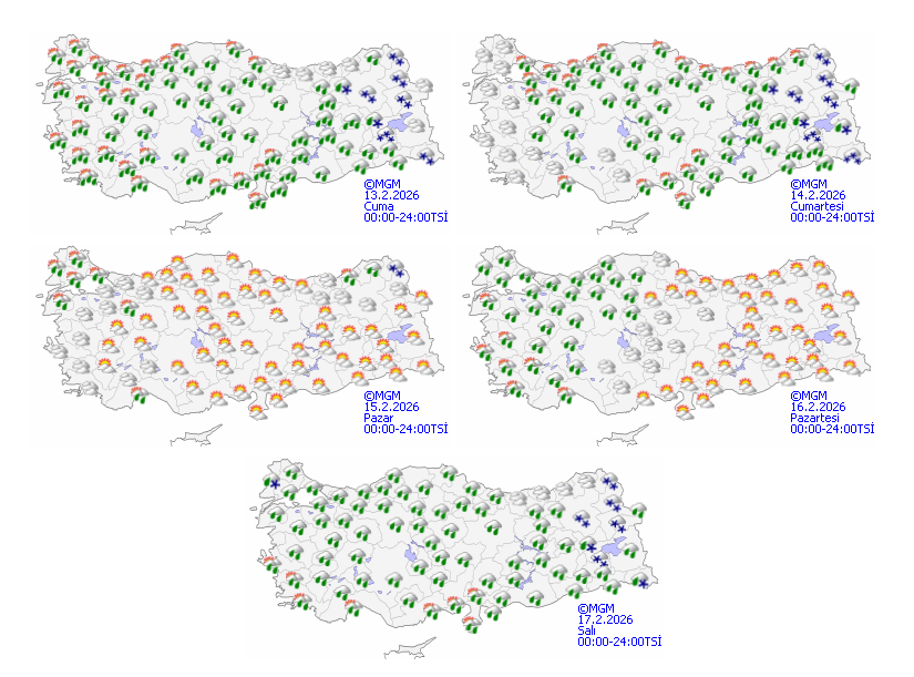 Meteorolojiden hava tahminlerine göre; Ülke genelinde sağanak yağmur, şiddetli fırtına ve kar yağışının etkili olması beklenirken Ankara, İzmir Diyarbakır dahil 49 il için sarı kod uyarısı yapıldı. 57 ilde etkili olacak sağanak yağmur, fırtına ve kar yağışına karşı Meteoroloji vatandaşların dikkatli ve tedbirli olması konusunda uyardı. Güney ve Kıyı Ege, Akdeniz, İç Anadolu’nun güneyi, Doğu Anadolu’nun güney ve batısı ile Erzurum, Çanakkale, Adıyaman çevreleri, Balıkesir, Gaziantep, Kilis ve Diyarbakır'ın batısında kuvvetli, İzmir’in güneyi, Aydın, Muğla, Antalya, Burdur ve Isparta illerinin güneyi, Mersin, Adana, Osmaniye, Kahramanmaraş ve Malatya çevreleri, Kayseri'nin güneyinde çok kuvvetli ve yerel şiddetli olması beklendiğinden ani sel, su baskını, heyelan ve kuvvetli kar yağışlarının oluşturabileceği ulaşımda aksamalar gibi olumsuzluklara karşı dikkatli ve tedbirli olunması gerekmektedir.