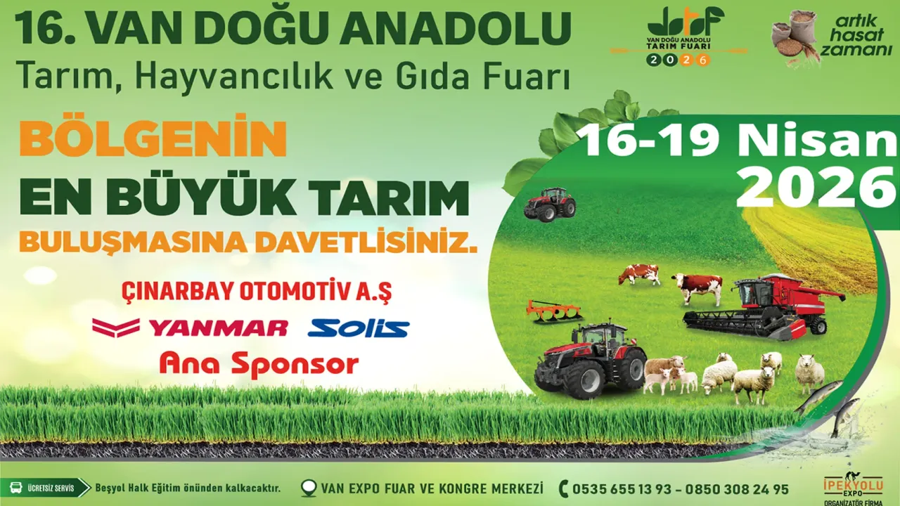 Van’da tarım ve hayvancılık sektörünün merakla beklediği büyük buluşma için geri sayım başladı! İpekyolu Expo Fuar AŞ tarafından bu yıl 16. kez organize edilecek olan "Van Doğu Anadolu Tarım Hayvancılık ve Gıda Fuarı", 16-19 Nisan 2026 tarihlerinde kapılarını ziyaretçilerine açacak.