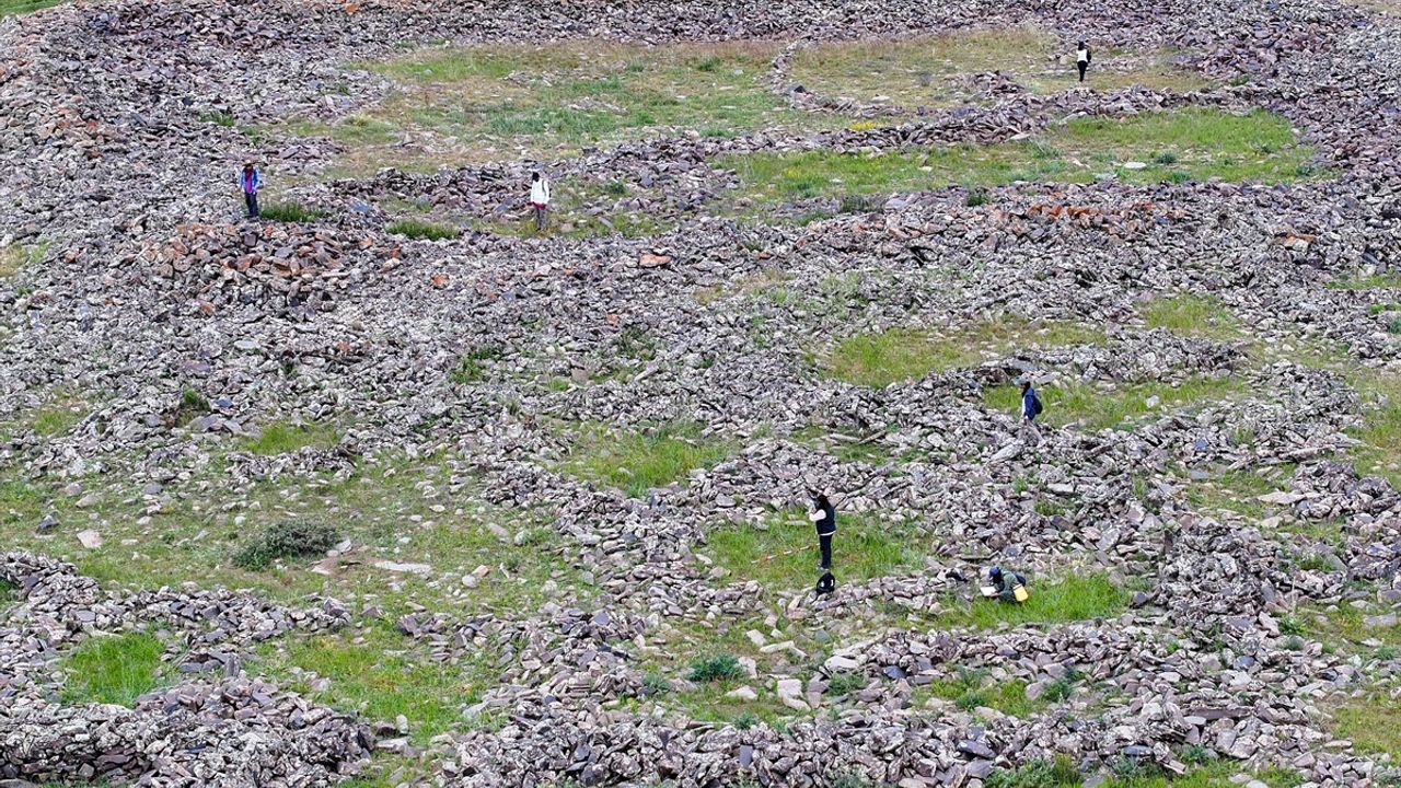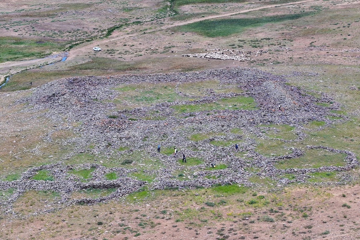 3 bin rakımda 4 kilometre uzunluğunda surları olan kale kalıntısıyla karşılaşmanın kendilerini şaşırttığını vurgulayan Çavuşoğlu, şunları kaydetti: "Surların kuzeybatı kesiminde yer alan iç kalenin, adeta yönetim merkezinin bulunması önemli. Dronla çektiğimiz görüntülerde 50'ye yakın mekanın, yaşantı alanlarının bulunması da bizim için önemli. Surların, buraya yerleşen kişilerin güvenliğini ve hayvanlarının rahatça otlatılmasını sağlaması açısından önem arz ediyor. Coğrafyanın doğal taşı olan bazalt taşlarının surlarda kullanıldığını görüyoruz. Doğal halleriyle özellikle yerleştirilmiş. Bölgede ocak şeklinde bazalt taşların kırıldığı bir bölüm yer almakta. Bir de kurgan türü diyebileceğimiz yuvarlak yapılar tespit ettik."
