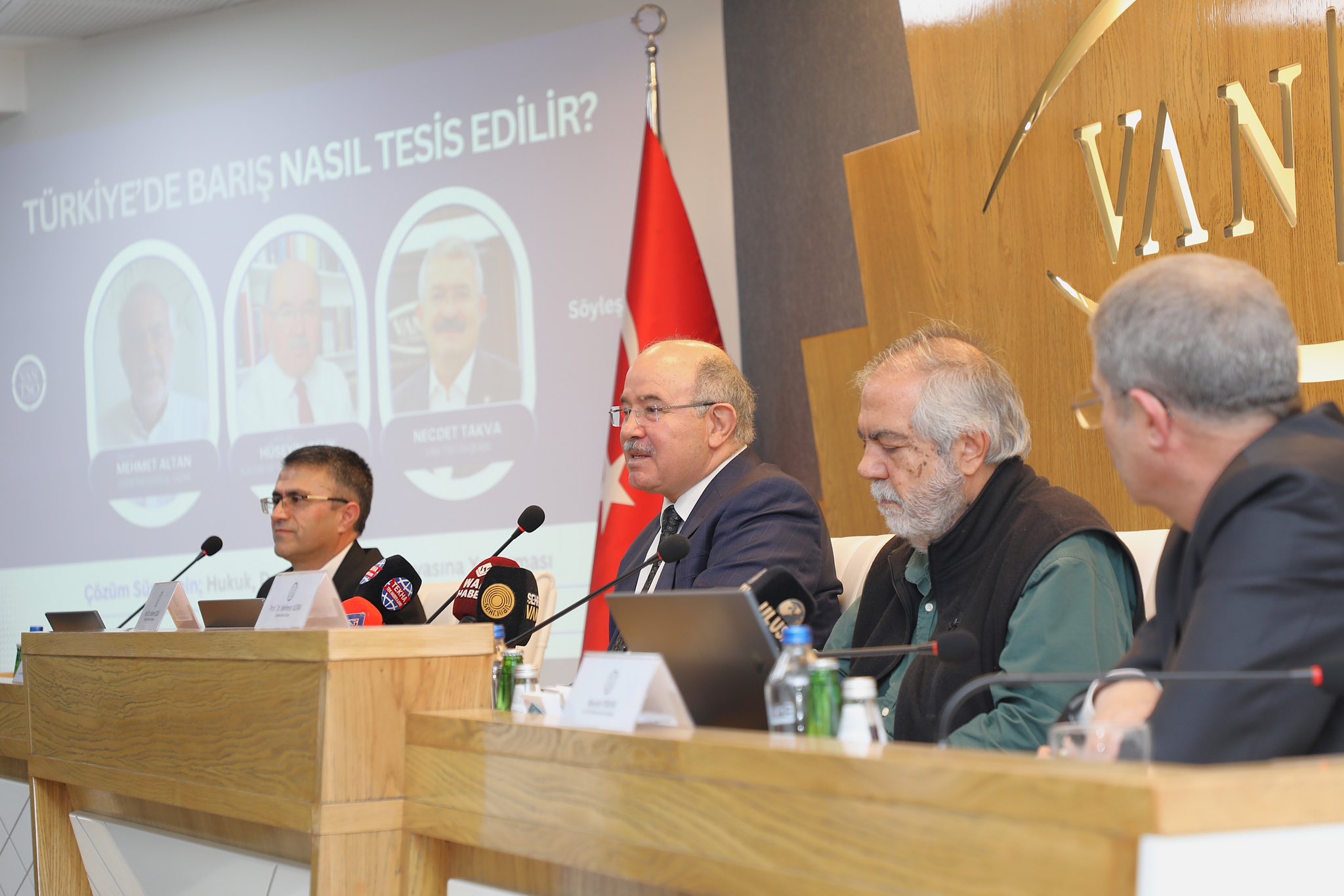Van Ticaret ve Sanayi Odası (Van TSO) tarafın dan “Türkiye’de Barış Nasıl Tesis Edilir?” başlığıyla düzenlenen söyleşi, yoğun katılımla gerçekleştirildi. “Çözüm Sürecinin; Hukuk, Demokrasi ve İş Dünyasına Yansıması”nın ele alındığı programın moderatörlüğünü Van Yüzüncü Yıl Üniversitesi Edebiyat Fakültesi Sosyoloji Bölümü Başkanı Prof. Dr. Suvat Parin üstlenirken, Kültür ve Milli Eğitim eski Bakanı Hüseyin Çelik, Öğretim Üyesi ve Yazar Mehmet Altan ile Van TSO Yönetim Kurulu Başkanı Necdet Takva konuşmacı olarak yer aldı.