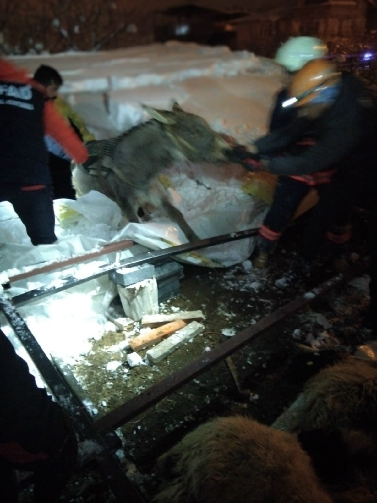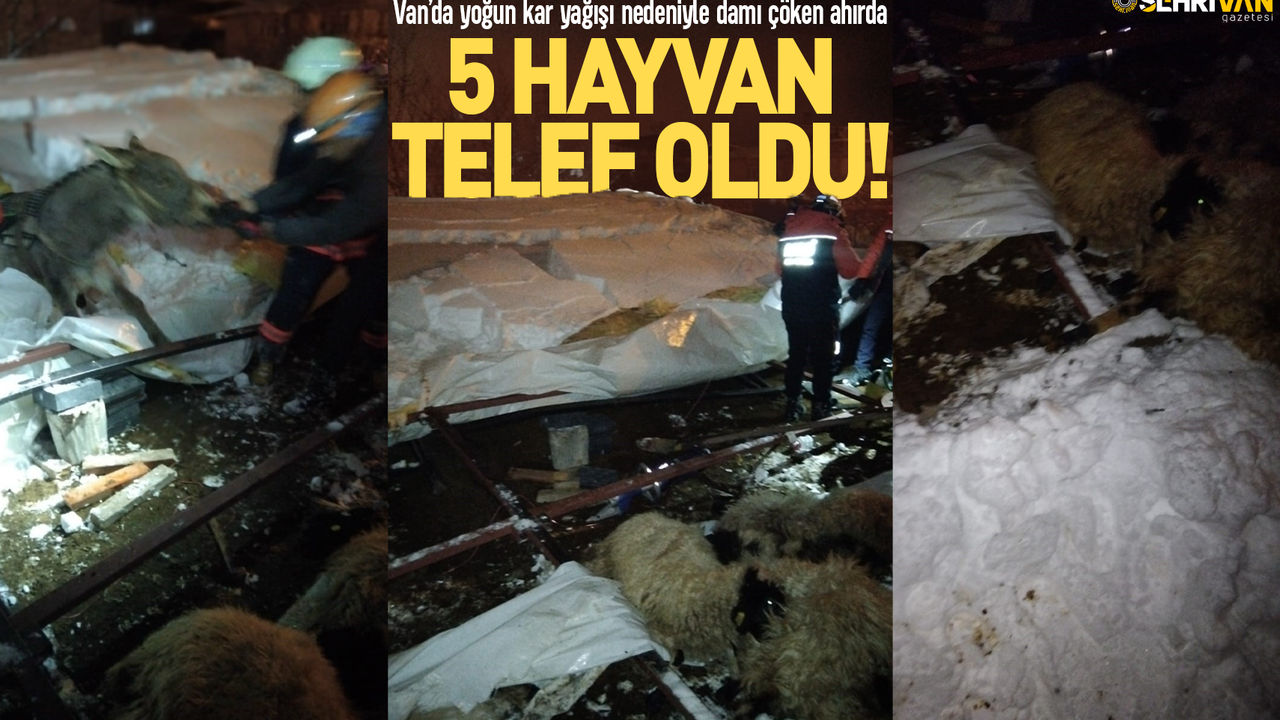 Van’da iki gündür etkili olan yoğun kar yağışı günlük hayatı olumsuz etkiledi. Van'da yoğun kar yağışının ağırlığına dayanamayan ahırın çökmesi sonucu 5 küçükbaş hayvan telef oldu.