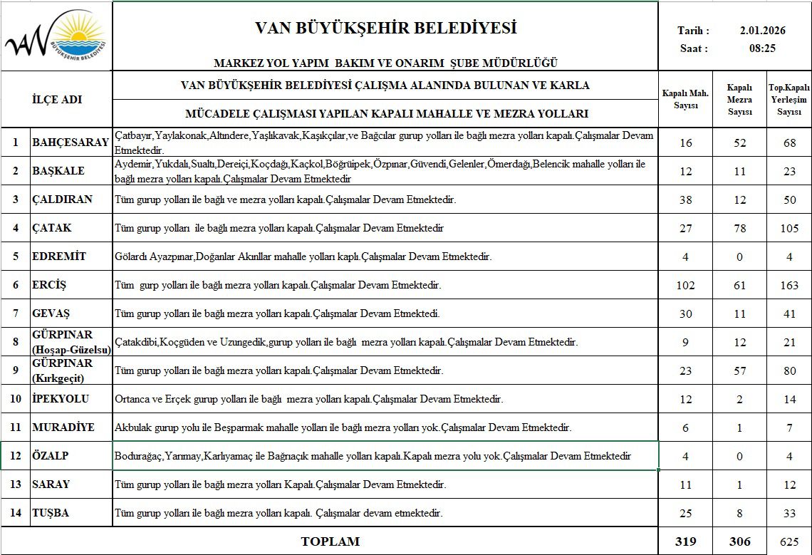 Meteoroloji "Ülkemize Rusya üzerinden gelen soğuk hava dalgası ülke genelini etkisi altına alacak. Hava sıcaklığının hızla düşmesiyle birlikte birçok ilde kar yağışı görülecek.” diye açıklamada bulunmuştu. Van’da da sıcaklığın hızla düşmesiyle birlikte dün itibariyle yoğun kar yağışı etkisini gösterdi. Yoğun kar yağışı etkisi sonrası Van merkez dahil birçok ilçe ve mezranın yolları ulaşıma kapandı.