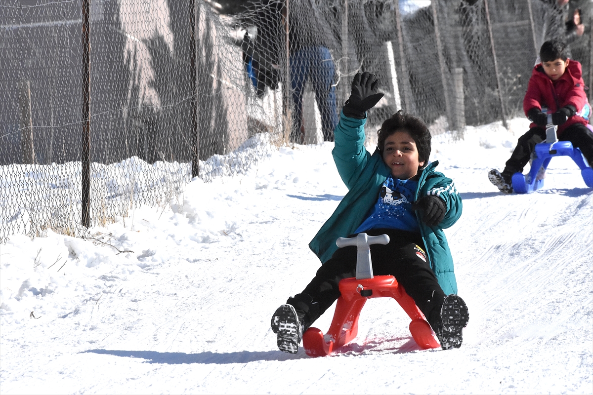 Kızaklarıyla tepeye tırmanan çocuklar, gün boyunca kayarak eğlenceli zaman geçiriyor. Aileler de zaman zaman çocuklarının eğlencesine eşlik ederek kızaklarla kayıyor. Çocuklardan Muhammed Akif Karaman, karın tadını çıkarmaya çalıştıklarını söyledi. Güzel havayı fırsata çevirdiklerini belirten Karaman, "Burada teknolojiden uzak şekilde arkadaşlarımızla vakit geçiriyoruz. Yolu kayak pistine dönüştürdük. Yeni arkadaşlıklar edindik, güzel ve eğlenceli zaman geçiriyoruz." dedi.