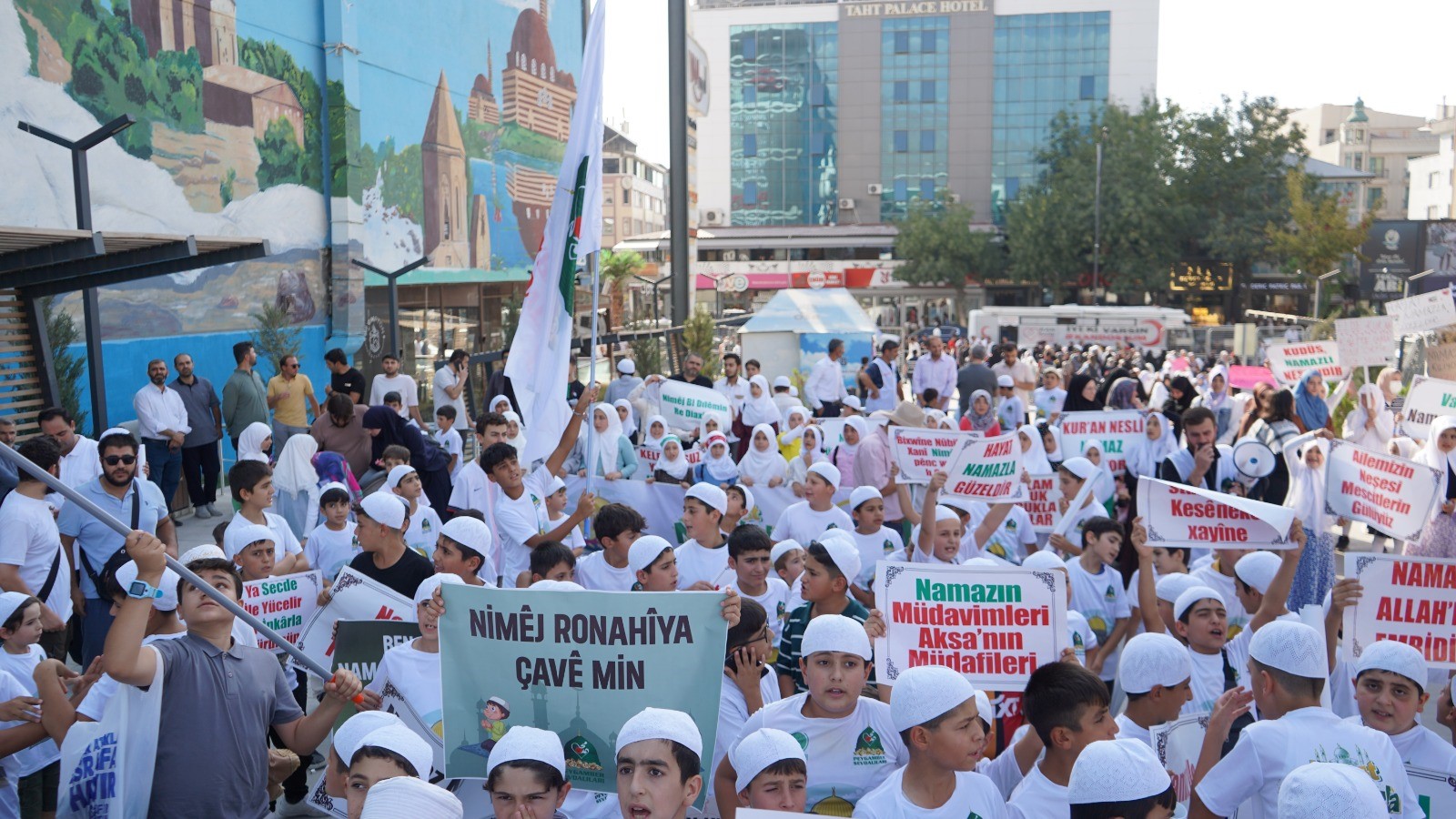 Van Beşyol Meydanı'nda başlayan yürüyüş, Cumhuriyet Caddesi güzergâhından devam ederek Kent Meydanı'nda sona erdi. Burada saf tutan çocuklar, ikindi namazını hep birlikte kıldı. Kur'an-ı Kerim tilavetinin ardından konuşan İlahiyatçı Muhammet Emin Demir, namazın önemine dikkat çekti. Demir, "Namaz kılan kişi cennetin anahtarını elde eder. Peygamber Efendimiz, namazı evin ortasındaki kolona benzetiyor. Namazını hakkıyla kılan, dinini sağlam tutmuş olur. Namaz kılmayan kimse ise yıkık bir amelle Allah'ın huzuruna gider" dedi.