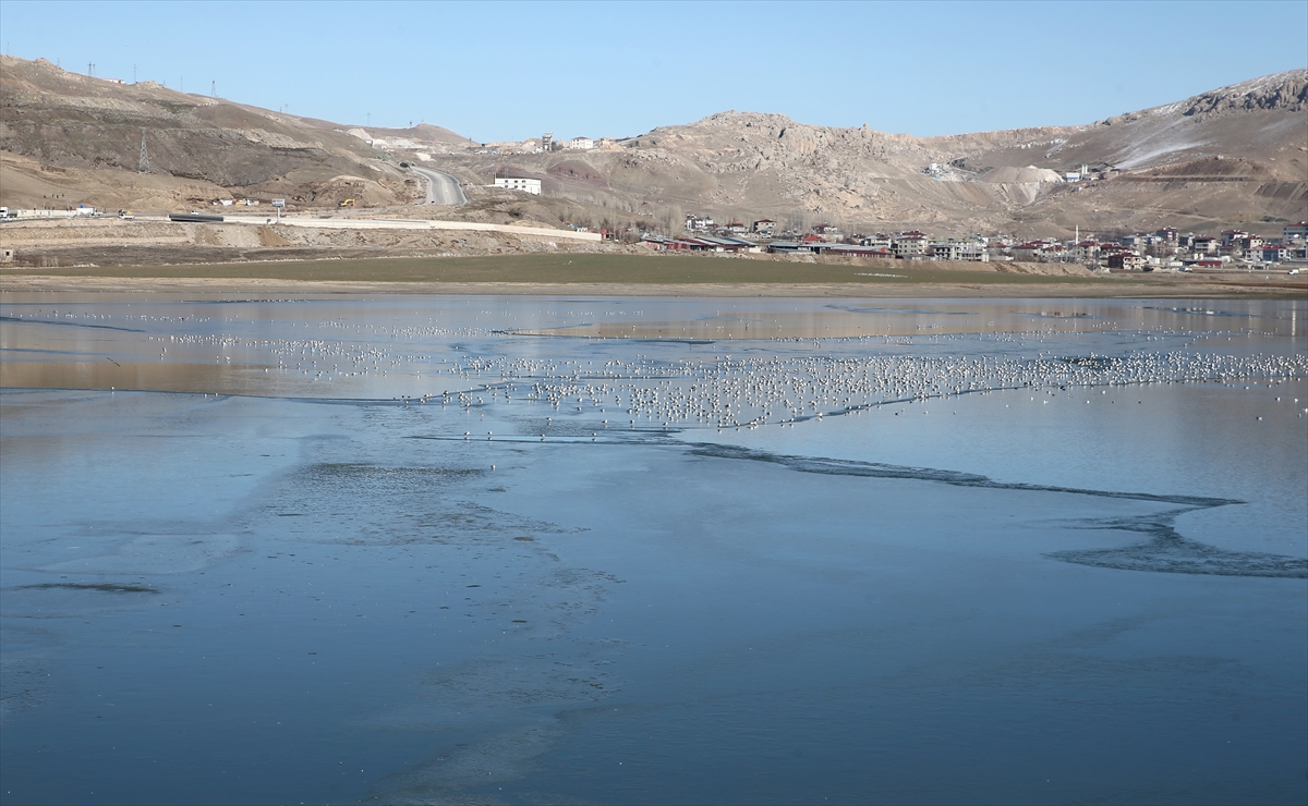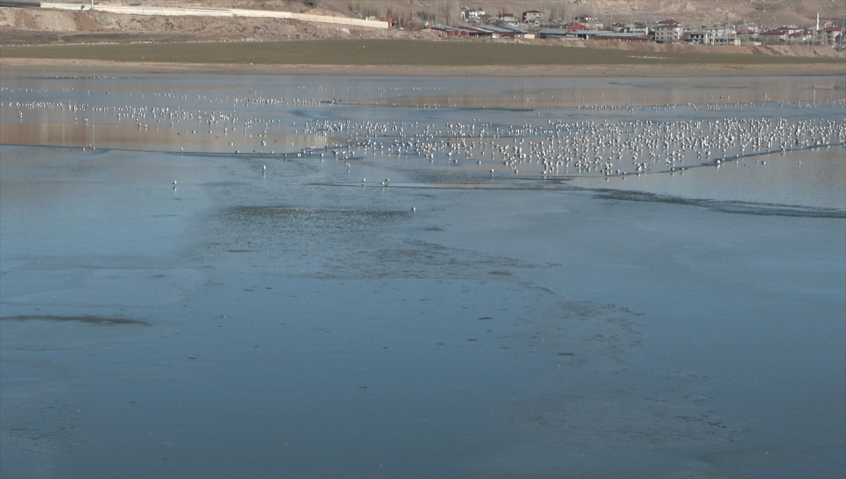 Hava sıcaklığının gece sıfırın altında 5 dereceye kadar düştüğü kentte, Van-Özalp kara yolunda sulama amaçlı kullanılan Sıhke Gölü'nün yüzeyi kısmen buzla kaplandı.