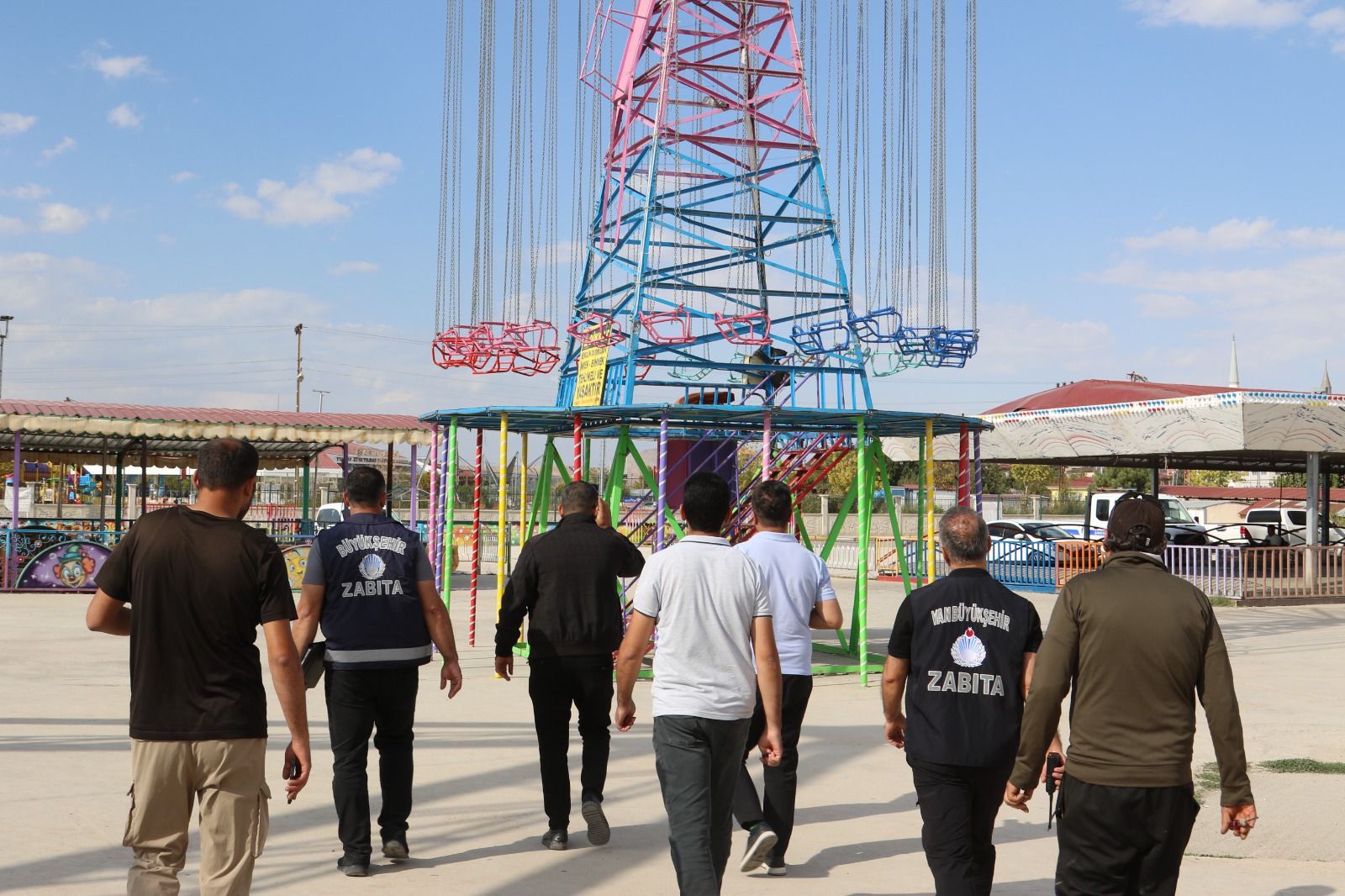 Zabıta Dairesi Başkanlığı ekipleri ile teknik personellerin katılımıyla yapılan denetimlerde, lunaparklardaki oyun gruplarının güvenlik donanımları, teknik yeterlilikleri ve işletme standartları detaylı şekilde incelendi. Yapılan kontrollerde risk teşkil eden unsurlar tespit edilerek işletmecilere gerekli uyarılar yapıldı.