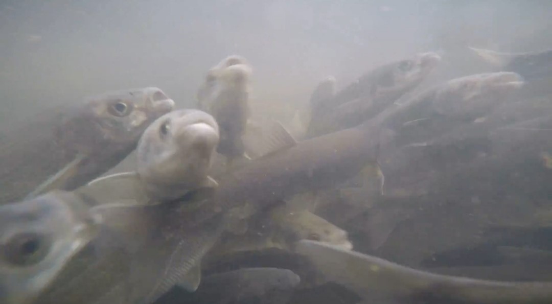 Dünyada yalnızca Van Gölü'nde yaşayan Van Balığının üreme döneminde suyun tersine yüzerek tatlı su kaynaklarına yaptığı göçü su altı kamerasıyla görüntülendi.