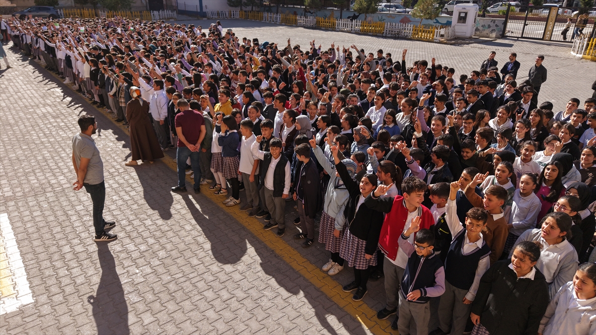 Tenzile Ana Ortaokulu bahçesinde yapılan etkinlikte, kağıtlara çizdikleri Filistin bayraklarını açan öğrenciler, öğretmenleriyle İsrail aleyhine sloganlar attı. İlahiler seslendiren, şiirler okuyan öğrencilerin Gazze halkına ve İsrail ablukasını kırmak amacıyla Gazze'ye giden Küresel Sumud Filosu'na destek mesajları katılımcılara duygusal anlar yaşattı. Etkinlik sırasında gözyaşlarına hakim olamayan 7. sınıf öğrencisi Alperen Hamza Bayazıt, Gazze'deki kardeşleri için yüreklerinin yandığını söyledi.