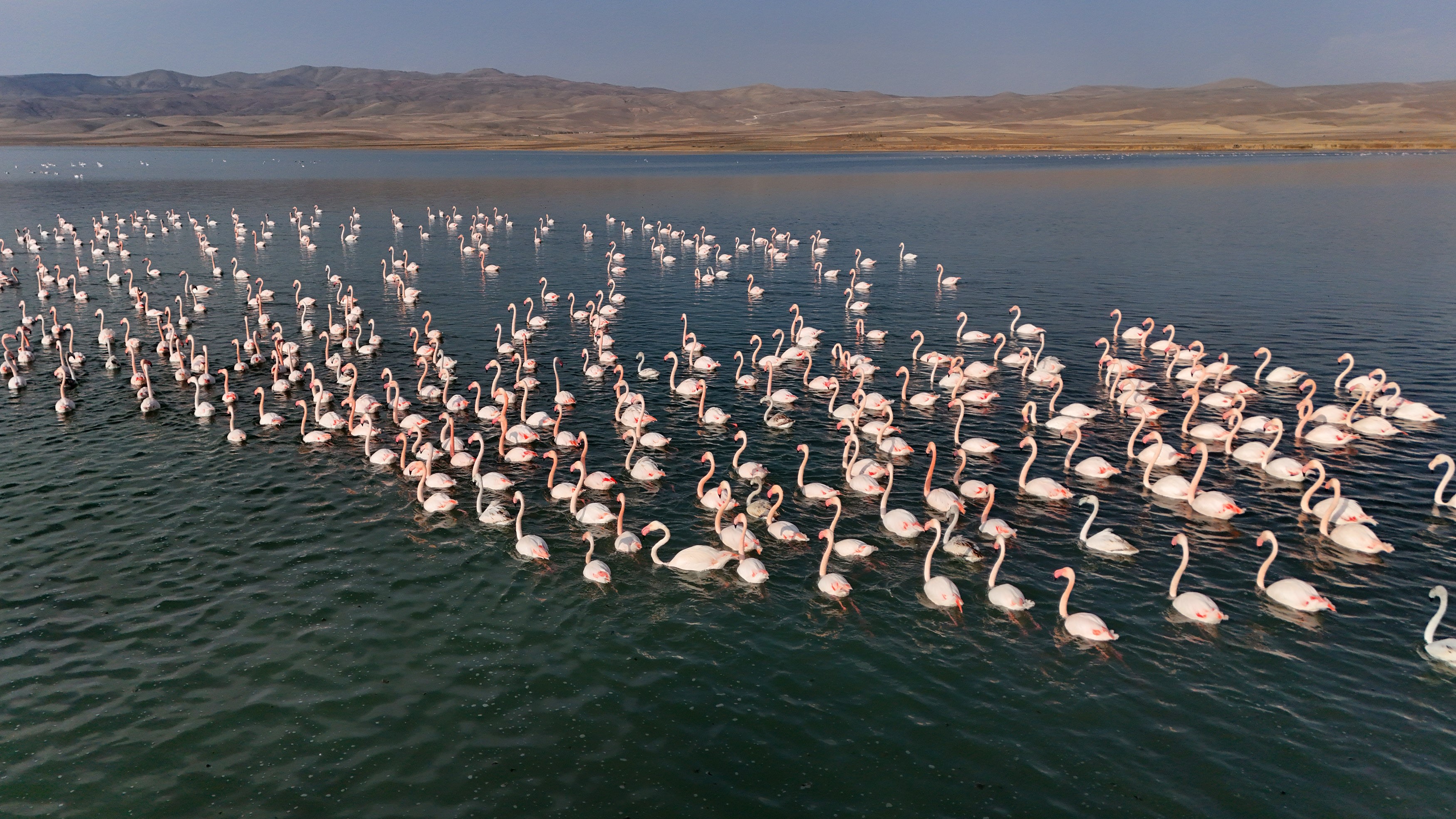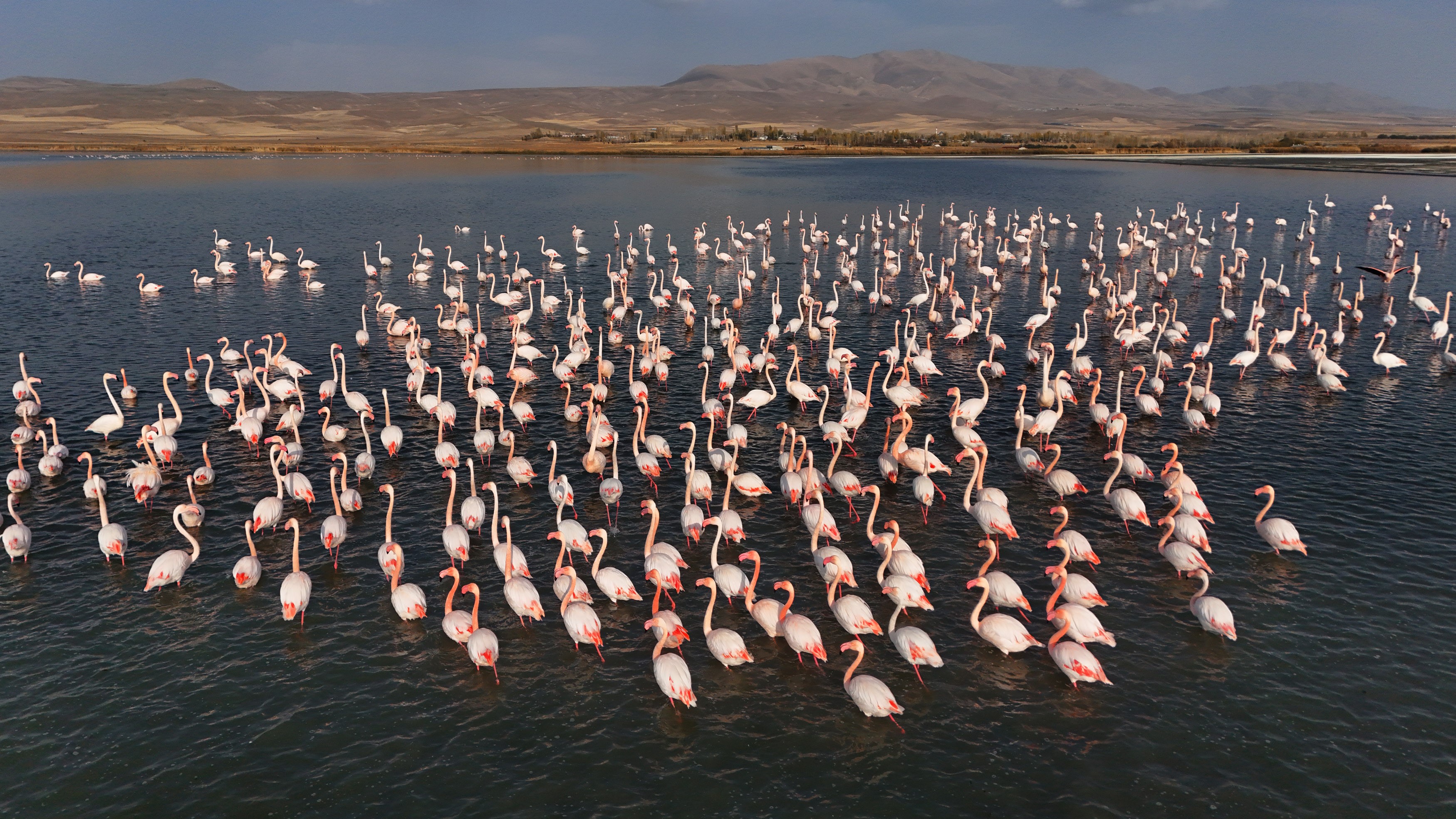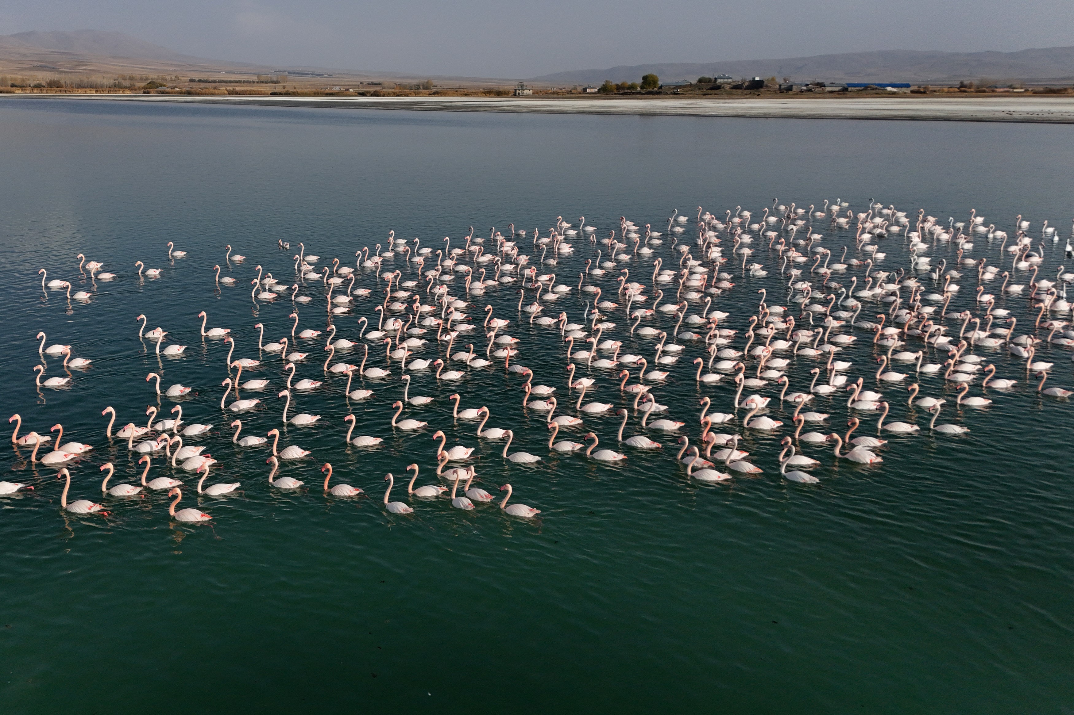 Göçmen kuşların Kuzey Afrika'dan İran'a uzanan yolculuğunda en önemli konaklama merkezlerinden Van Gölü havzası, sulak alanlarıyla çok sayıda türden binlerce kuşu bünyesinde barındırıyor. Van'ın doğusunda yer alan, eşsiz doğal güzelliği ve biyolojik çeşitliliğiyle dikkat çeken Erçek Gölü, her yıl olduğu gibi bu yıl da flamingoların göç yolculuğunda uğrak noktası oldu.