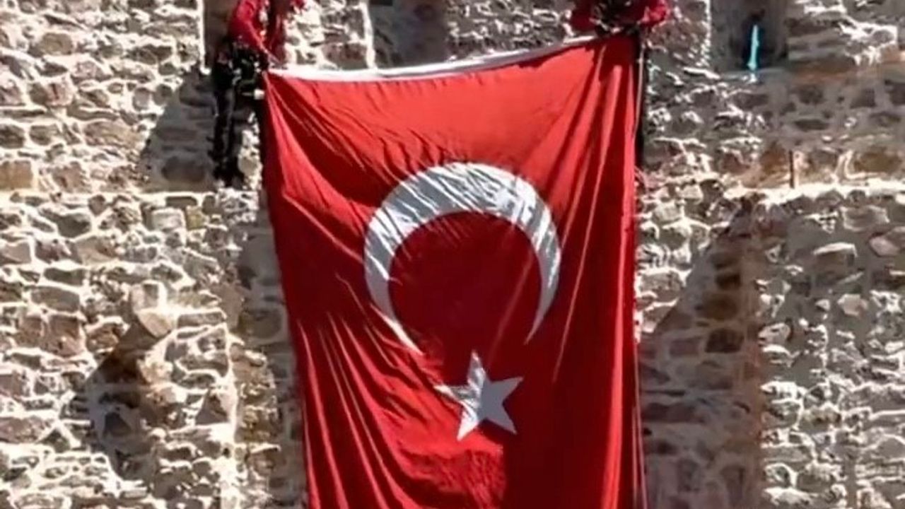 TÜRK BAYRAĞI YENİDEN KALE SURLARINA ASILDI