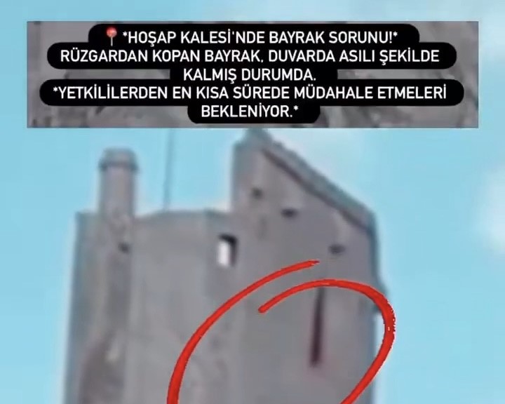 Van’ın Gürpınar ilçesinde bulunan tarihi Hoşap Kalesi’nde, rüzgârın etkisiyle zarar gören Türk bayrağının hali sosyal medyada kısa sürede gündem oldu. Kaledeki bayrağın zarar görmesi üzerine vatandaşlar, yetkililerden bir an önce müdahale edilmesini istedi. Bu üzerine harekete geçen Jandarma ekiplerinin müdahalesiyle yeniden surlara asıldı.