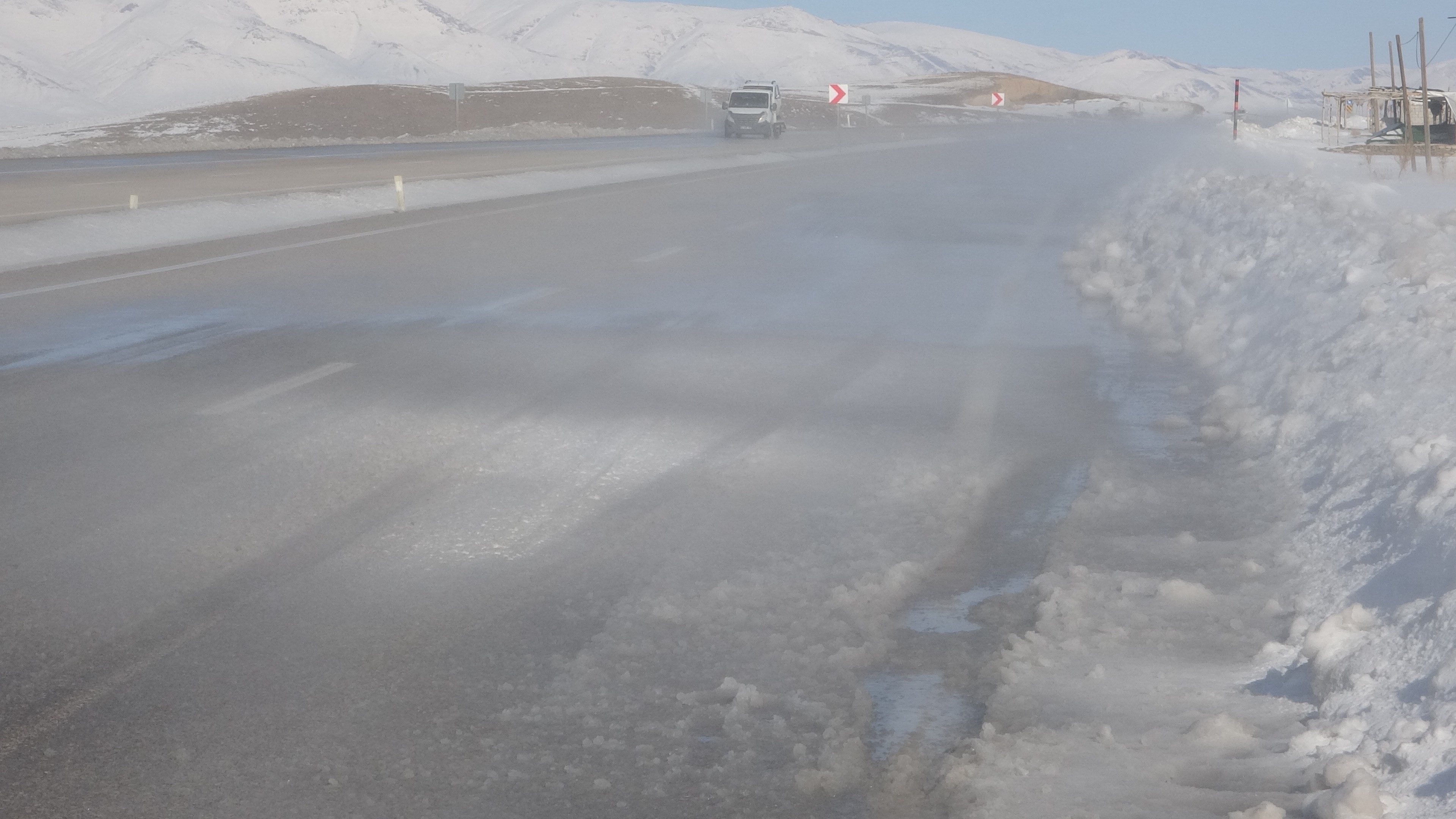 Van’da kent genelinde etkili olan soğuk hava dalgası, dün akşam saatleri itibarıyla yerini kar fırtınası ve yüksek kesimlerde yerini tipiye bıraktı. Özellikle Van-Çatak, Van-Özalp ile Van-Hakkari kara yolundaki Güzeldere Geçidi'nde etkili olan tipiden dolayı görüş mesafesi yer yer 50 metreye kadar düşüyor.