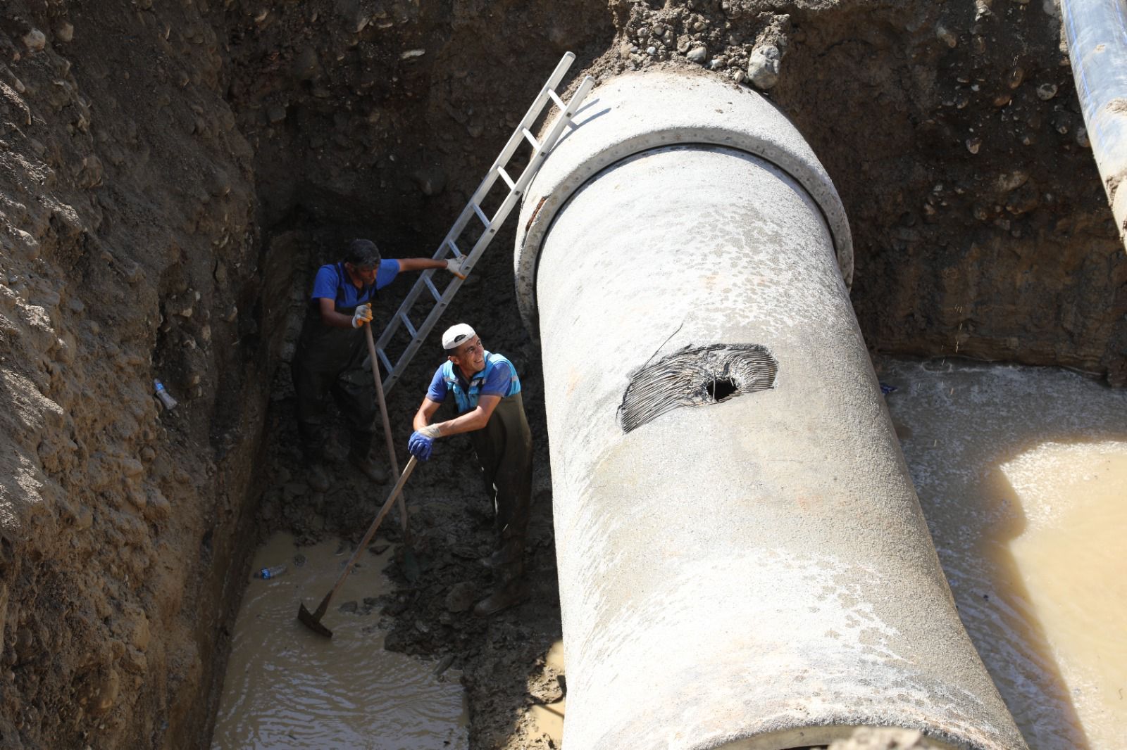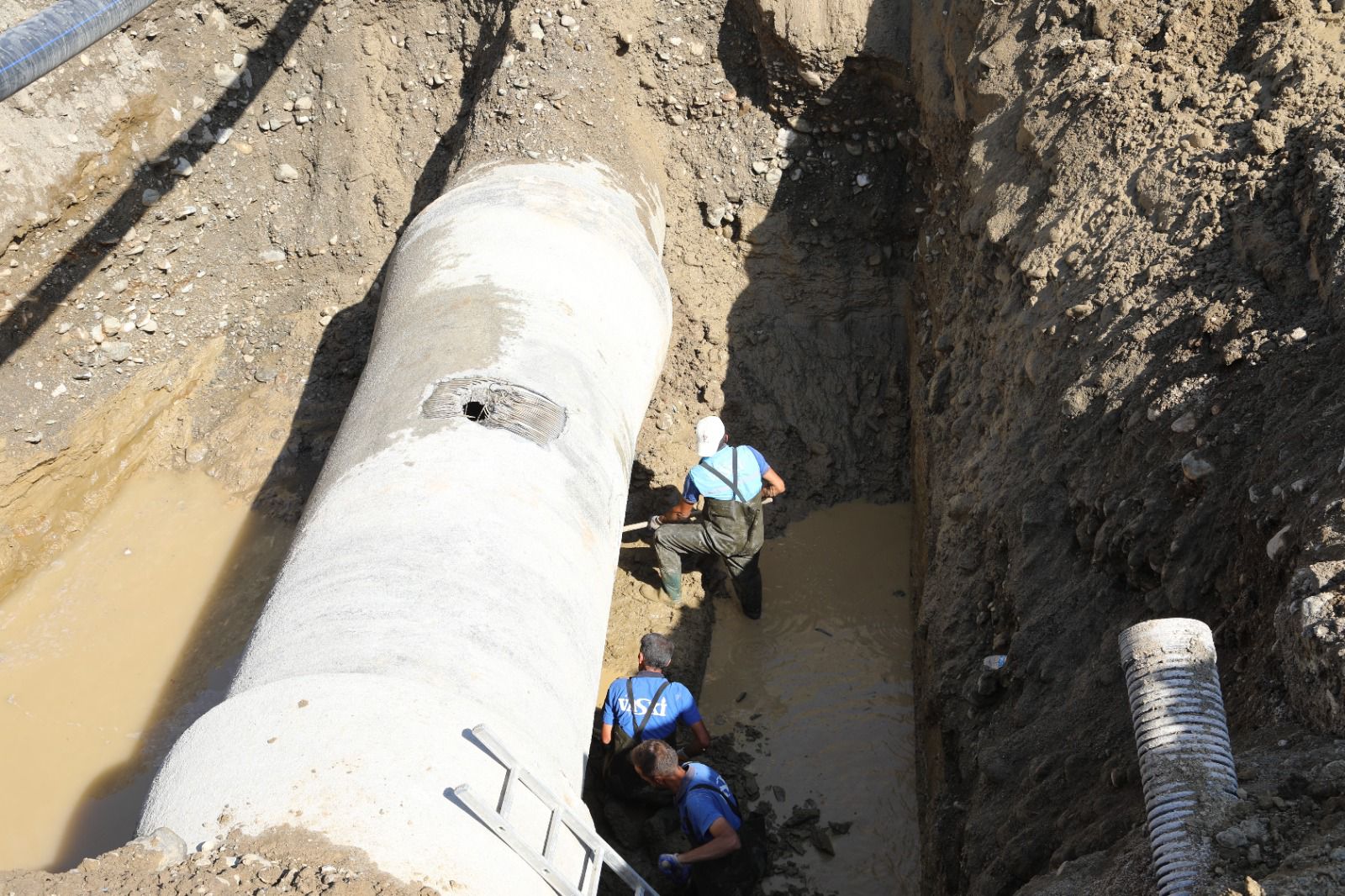 VASKİ, bakım onarım ekipleri, Van’ın içme suyu ihtiyacının büyük bir kısmını karşılayan Gürpınar Bejingir su kaynağındaki 1500’lük içme suyu isale hattında meydana gelen ani arızayı gidermek için çalışmalarını aralıksız sürdürüyor.