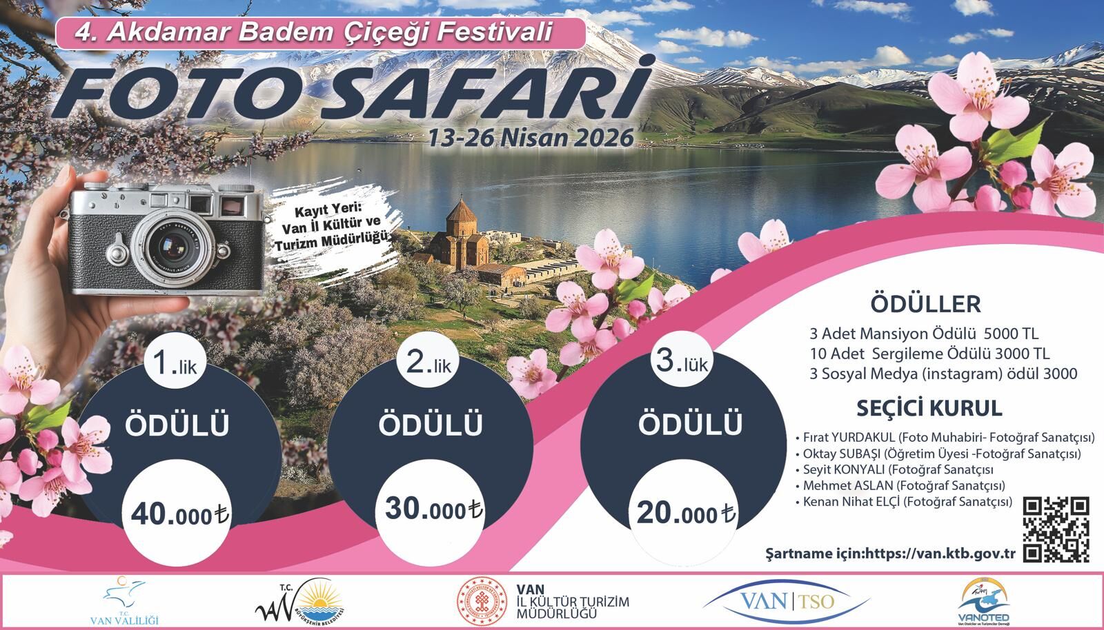 Ünlü fotoğraf sanatçıları ve akademisyenlerden oluşan seçici kurul, 29 Nisan’da toplanarak en iyi kareleri belirleyecek. Yarışma sonuçları ise 30 Nisan 2026 tarihinde saat 10.00’da Van İl Kültür ve Turizm Müdürlüğü’nün resmi web sitesi ve sosyal medya hesaplarından duyurulacak. Yarışma katılmak isteyenler https://van.ktb.gov.tr adresinden şartnameye ulaşabilecek.