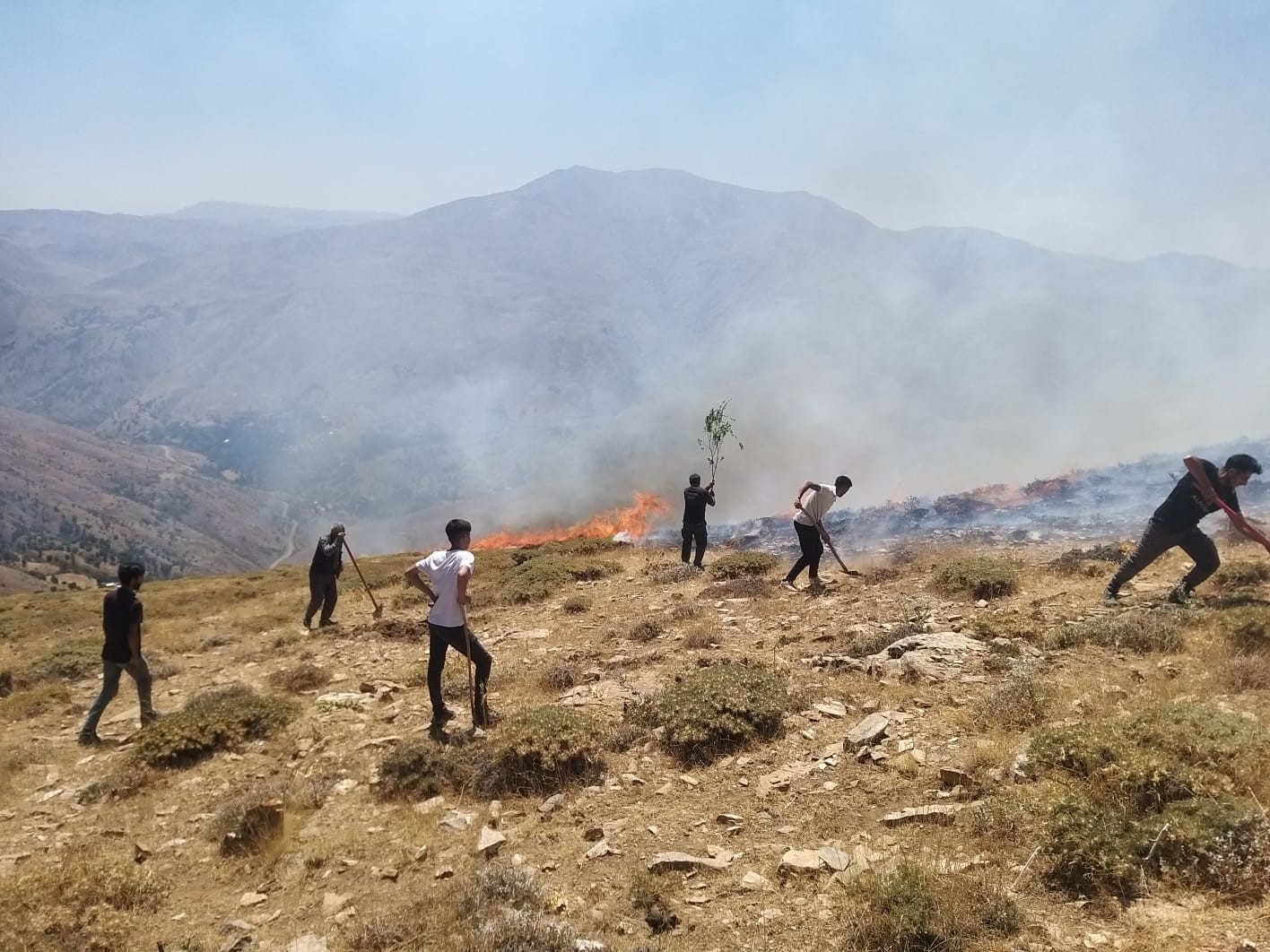 Arazinin dik ve engebeli olması nedeniyle araçlar bölgeye çıkamazken, yangın mahalle sakinleri ile itfaiye ekipleri tarafından küreklerle uzun çalışmalar sonucu söndürüldü.