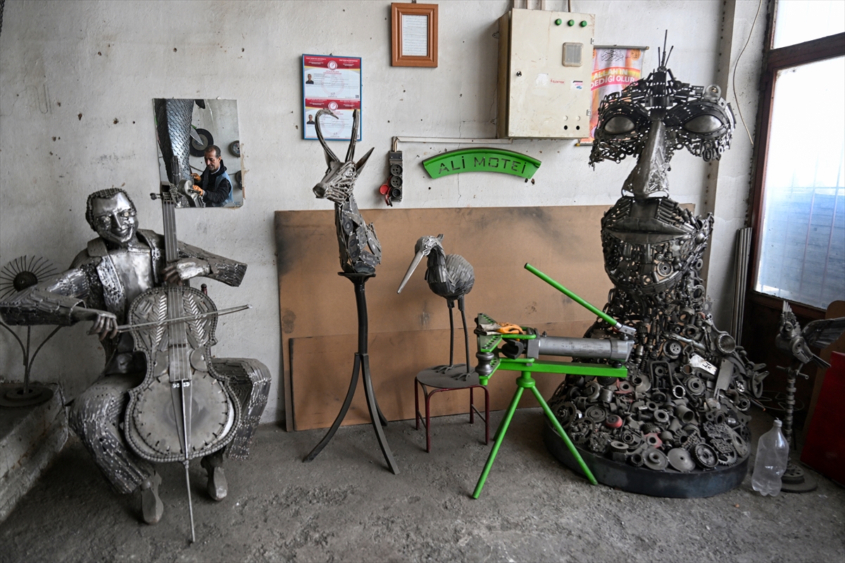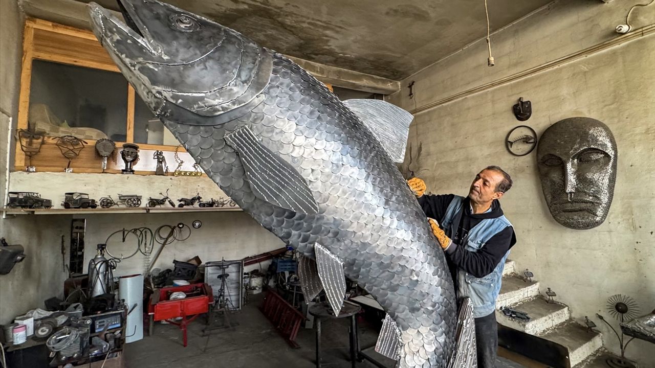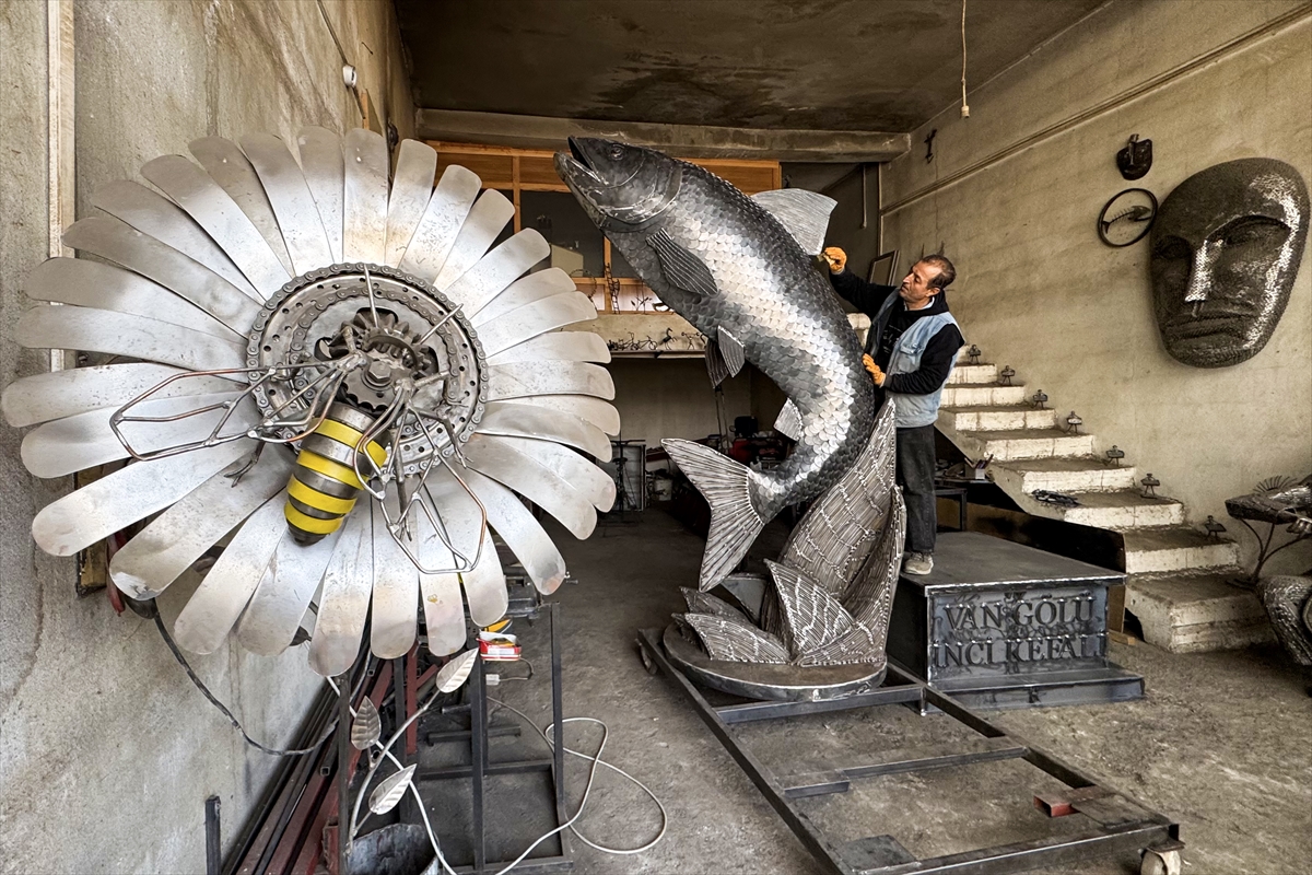 Van'da yaşayan İranlı heykeltıraş Ali Mutii, hurdacılardan topladığı 350 kilogramlık demirden 3 metre 30 santimetrelik "inci kefali" heykeli yaptı. Türkiye'ye 2016'da gelerek Van'da yaşamaya başlayan 56 yaşındaki heykeltıraş Mutii, Tuşba ilçesindeki Marangozlar Sitesi'nde kurduğu demir doğrama atölyesinde heykeltıraşlık sanatını sürdürüyor. Sıfır Atık Projesi'ne verdiği destekle tanınan ve daha önce Van Kedisi, Van Gölü Canavarı gibi birçok heykel yapan Mutii, üç ay önce Van Gölü'nde yaşayan inci kefalinin heykelini oluşturmaya karar verdi. Hurdacılardan topladığı sacdan elde ettiği 3 bin pulu inşaat demiri ve araba motorlarının parçalarıyla kaynakla birleştiren Mutii, 2,5 ayda 3 metre 30 santimetre yüksekliğinde inci kefali heykeli yaptı. Heykeltıraş Mutii, hazırladığı eserleri İpekyolu ilçesindeki Atatürk Sanat Galerisi'nde düzenlenecek sergide sanatseverlerin beğenisine sunacak.
