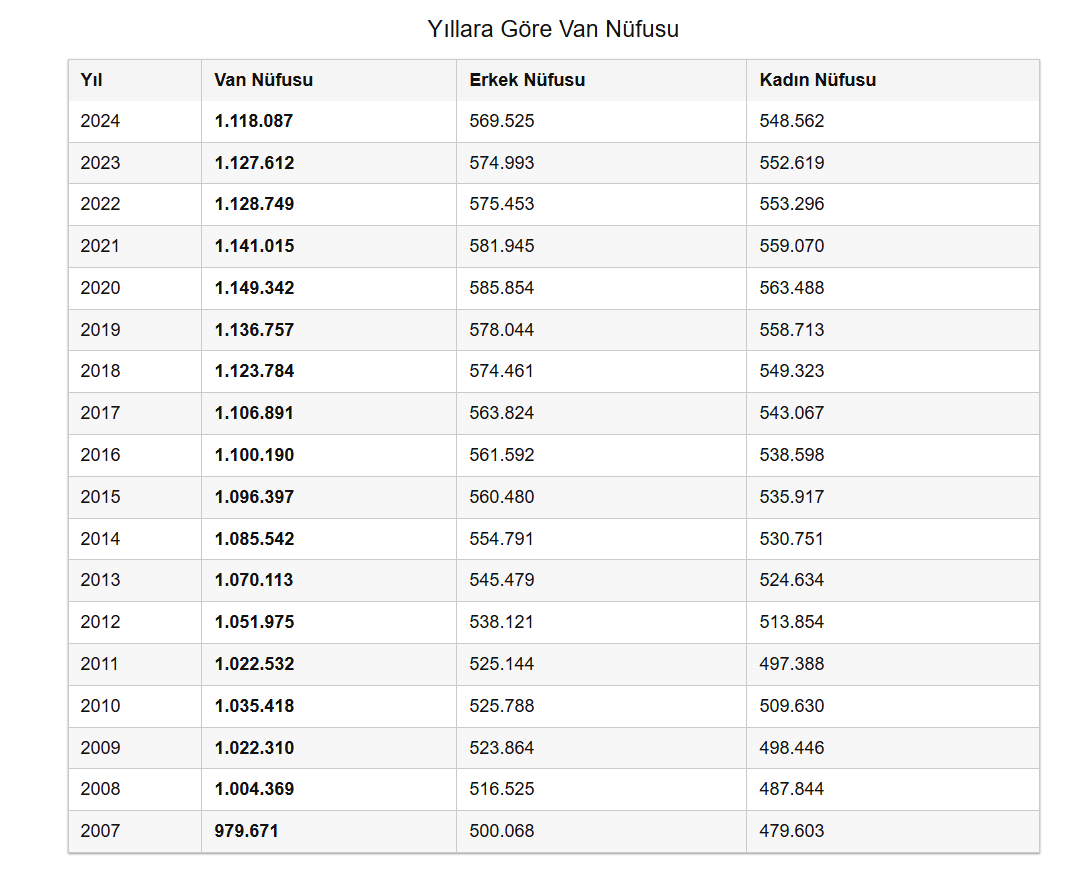 VAN’IN NÜFUSU 2024’TE 1 MİLYON 118 BİN 87