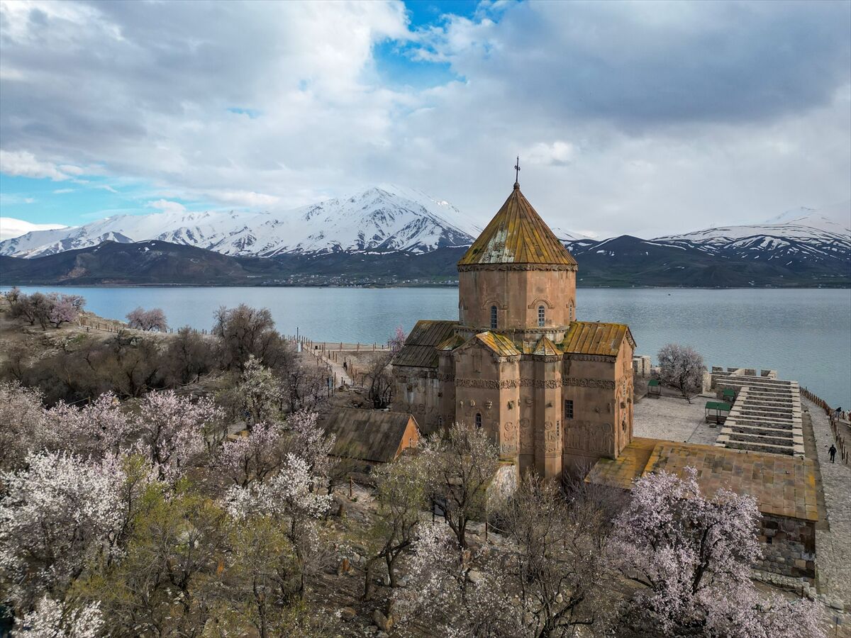 Van'da en çok ziyaret edilen yerlerin başında gelen Van Gölü'ndeki Akdamar Adası, badem ağaçlarının çiçek açmasıyla baharın en güzel renklerine büründü. Tarih ve doğanın buluştuğu ada ziyaretçilerini masalsı bir yolculuğa çıkarıyor.