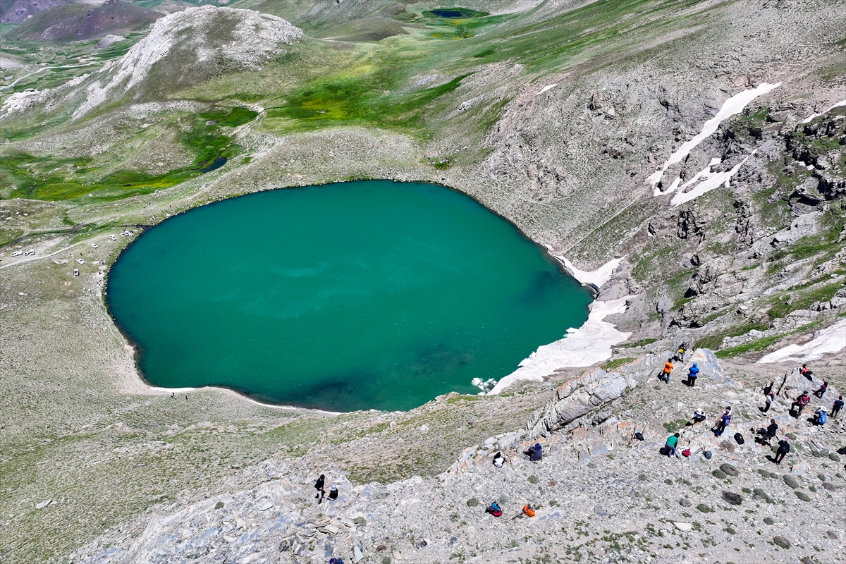 Vadi Doğa Sporları Kulübü üyesi 40 doğasever de zorlu yayla yolunu aşarak ulaştıkları 3 bin 200 rakımdaki gölün bulunduğu bölgede doğa yürüyüşü yaptı, eşsiz manzarayı görüntüledi.