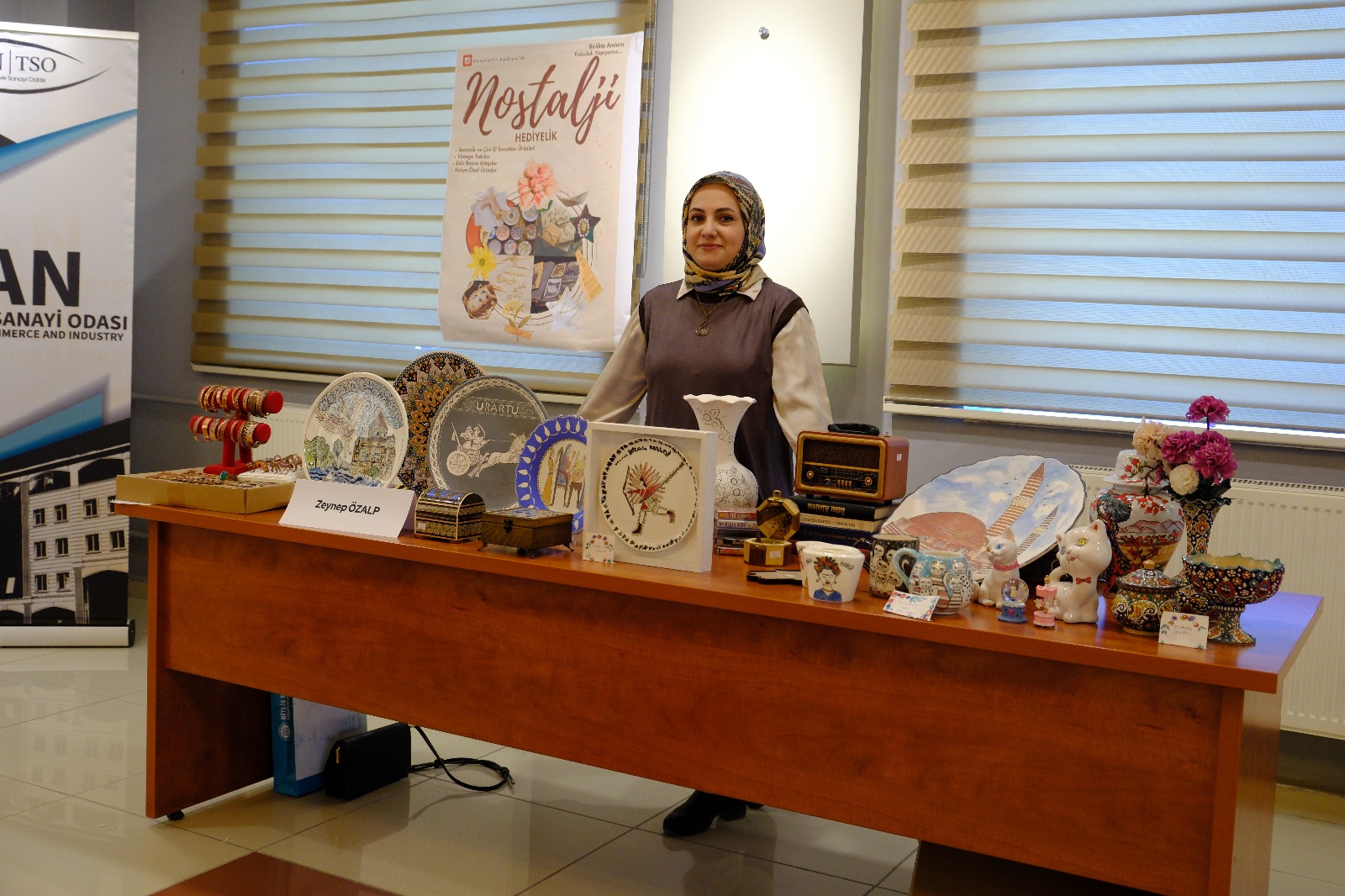 Nostalji hediyelik mağaza yöneticisi Zeynep Özalp Kaya, “5 yıldır çini seramik sanatı geliştirmeyi ve bu sanat dalında üretim yapmaya çalışıyoruz. Kadınlara Mağazamızda ücretsiz olarak çini ve seramik eğitimi veriyoruz. Eğitimleri alan kadınlarımız üretim yapıyor. Bizlerde bu ürünleri hem pazarlıyor hem satışa sunuyoruz. Bugün Van Ticaret ve Sanayi Odası Kadın girişimiler kurulu olarak burada sergiye katıldık. Özellikle kadın girişimcilerin sergide desteklenmesi bizim açımızda çok sevindiricidir. Bu sergide ürünlerimizi tanıtıp satışa hazırlıyoruz. Emeği geçenlere teşekkür ederim.” dedi.