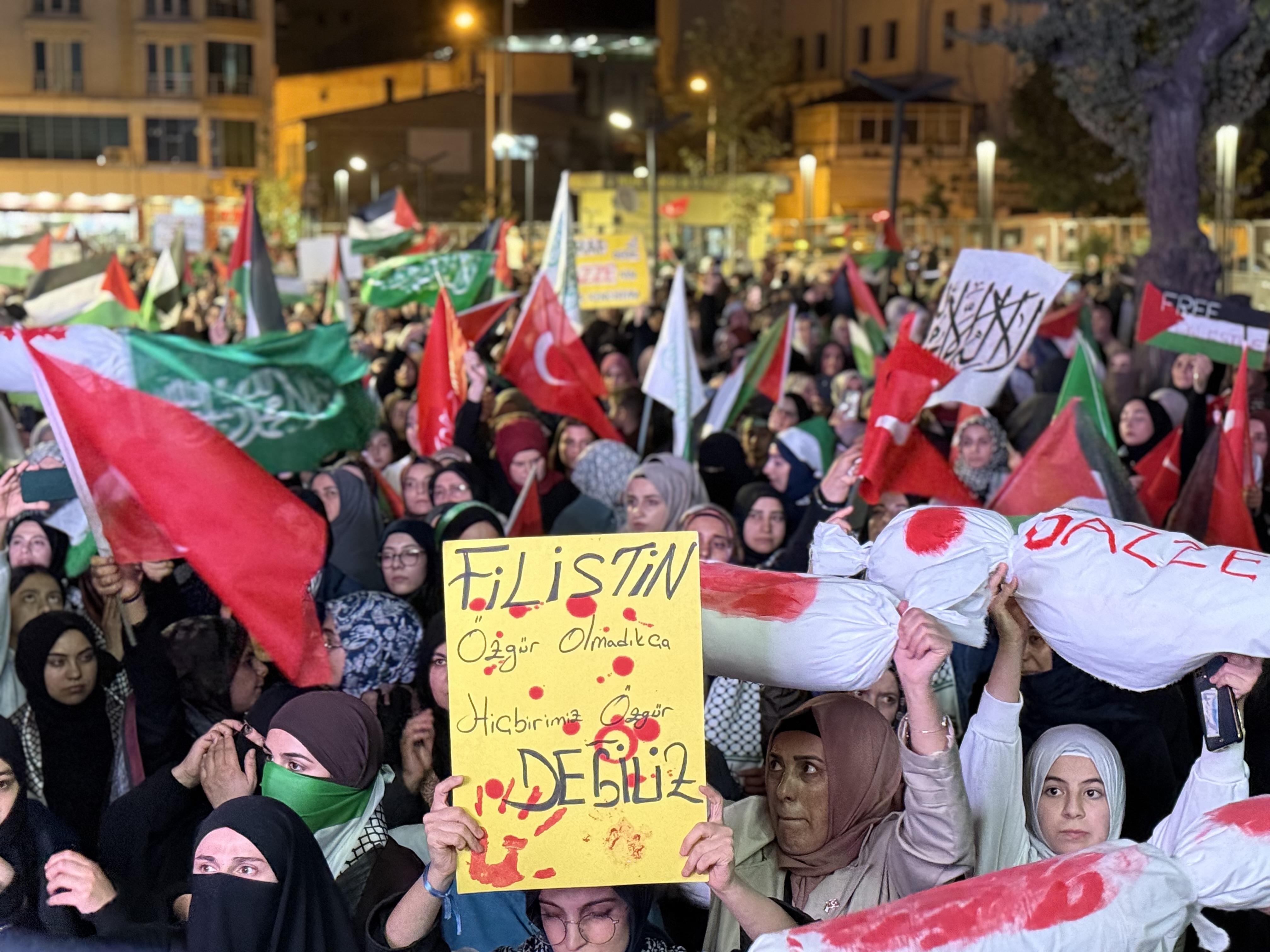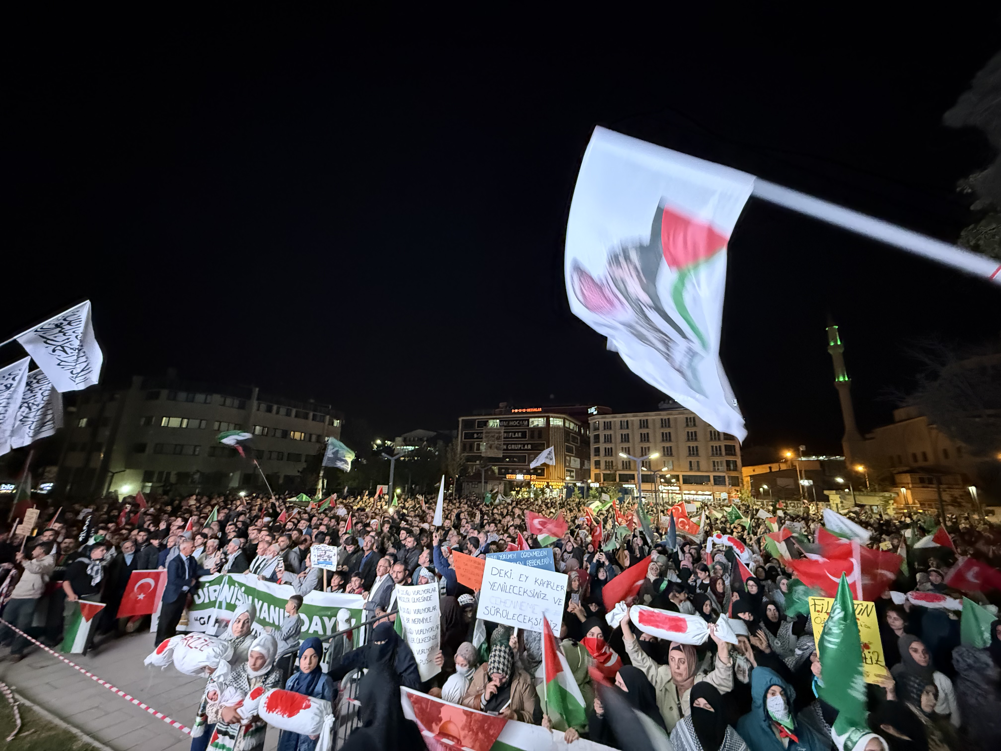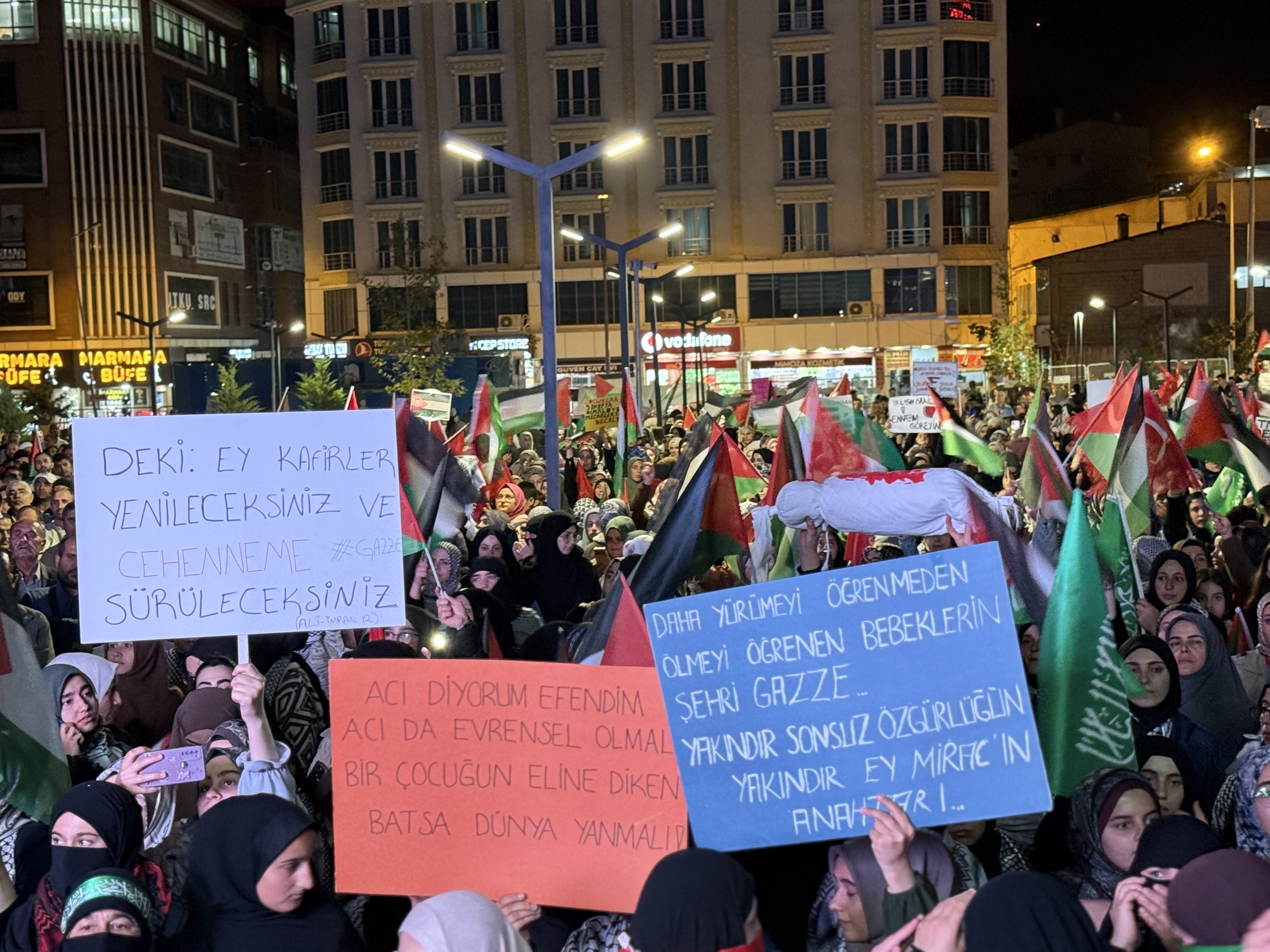 Van Kent Park’tan başlayan yürüyüş, sloganlar eşliğinde Van Kent Meydanı’nda son buldu. Katılımcılar ellerinde Filistin bayrakları ve pankartlarla İsrail’in saldırılarını protesto ederken, Filistin halkıyla dayanışma vurgusu yaptı.