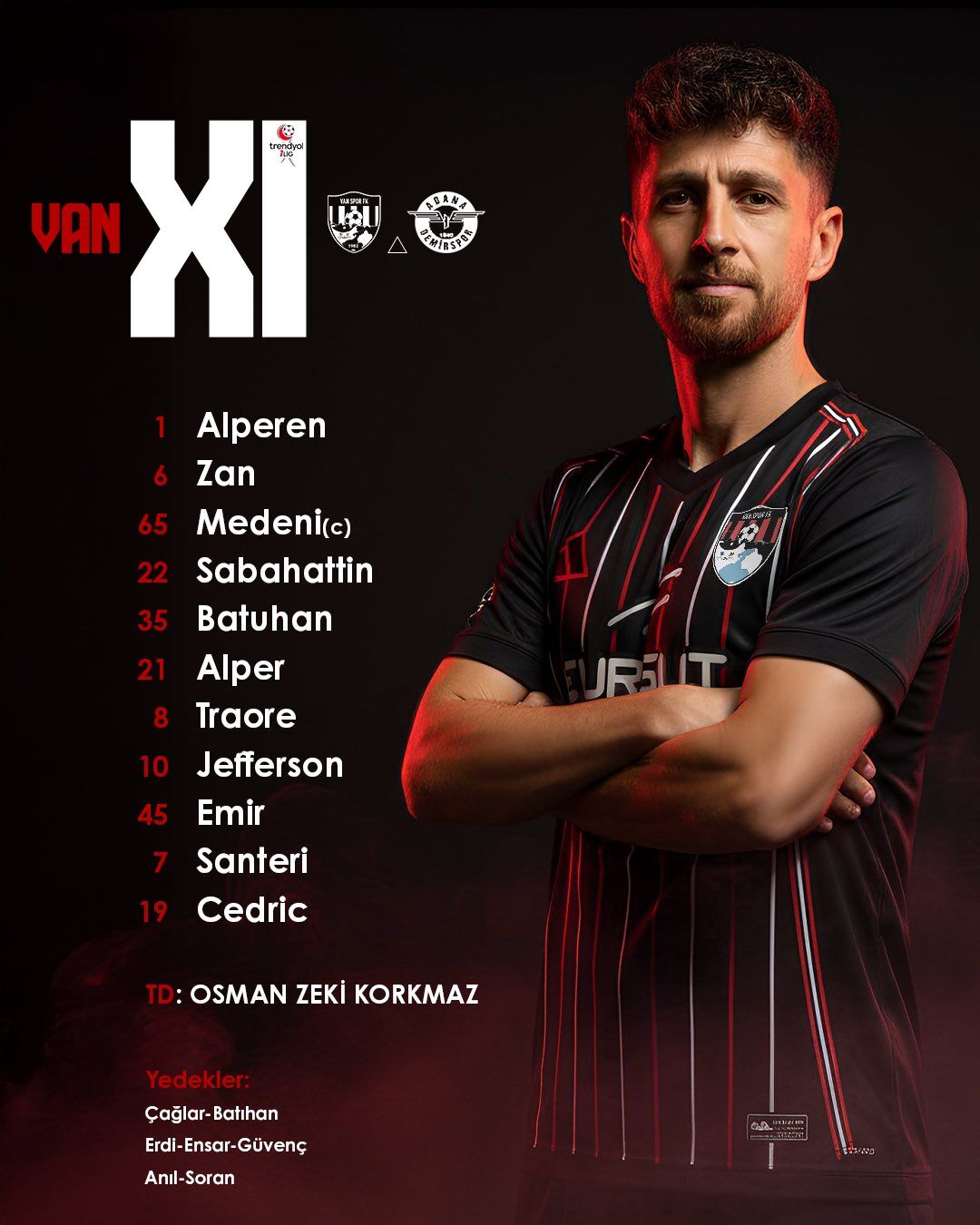 Trendyol 1.Lig’de Vanspor ile Adana Demirspor saat 13.30’da Van Atatürk Şehir Satadyumunda karşı karşıya geliyor. Ligden düşmesi kesinleşen Adana Demirspor’un ligde bir iddiası bulunmazken Vanspor’da ise tek hedef galibiyet.
