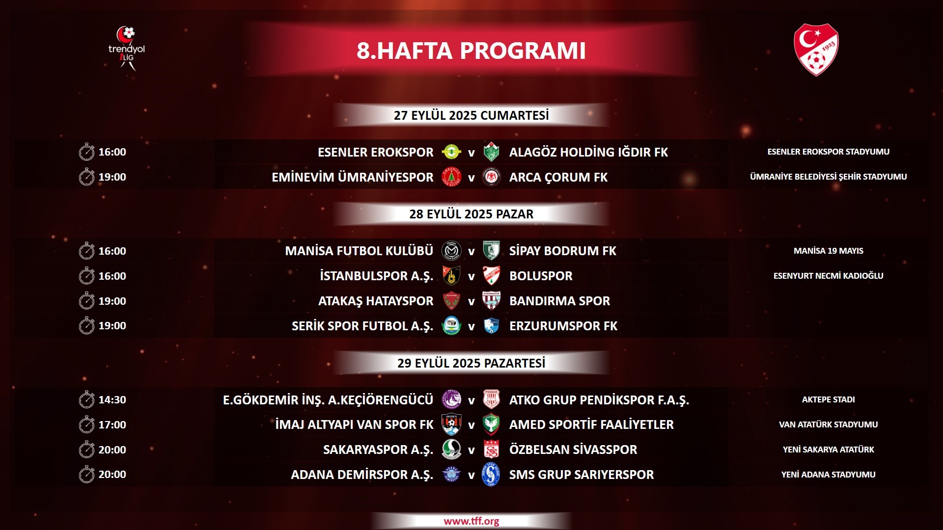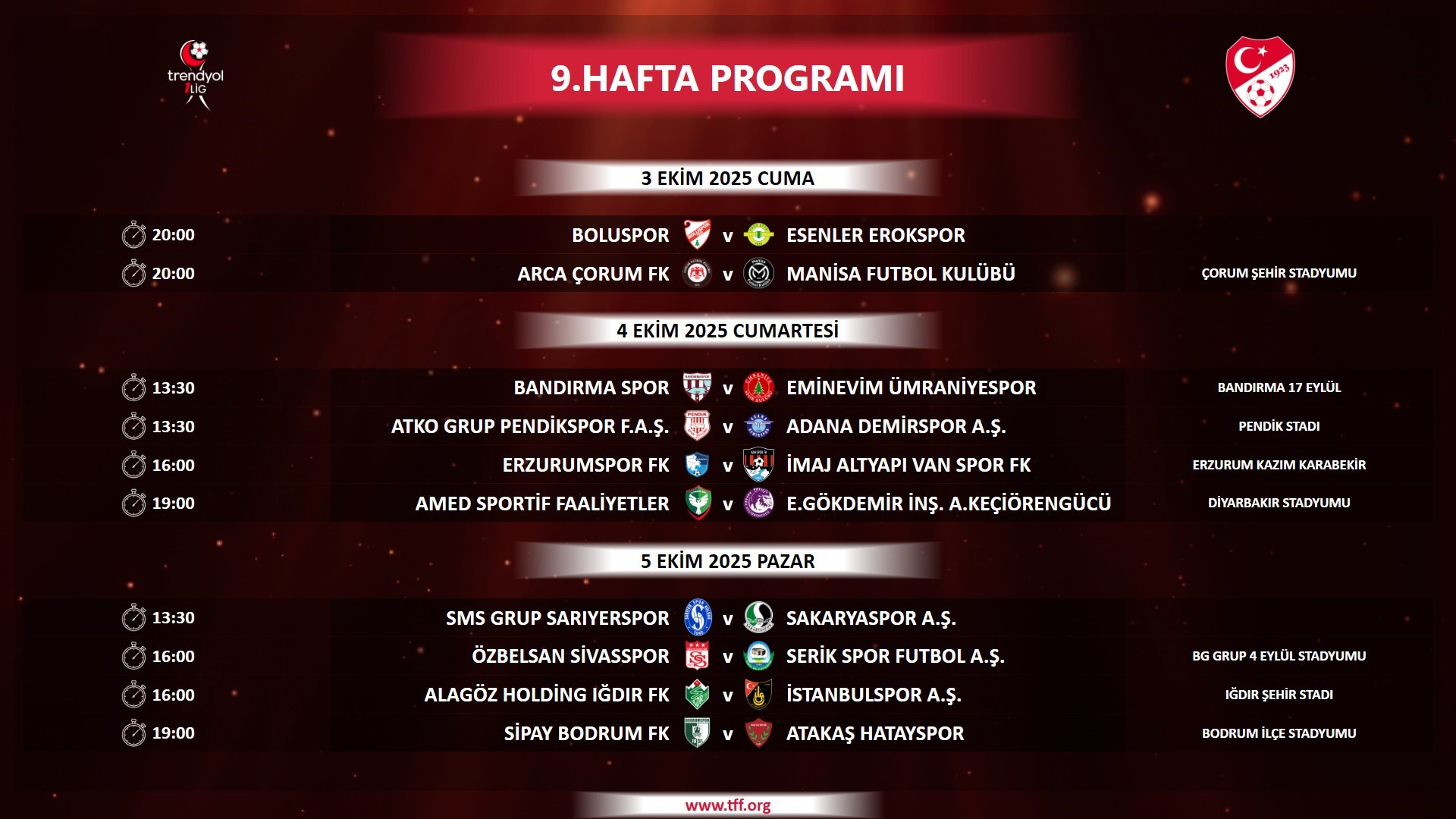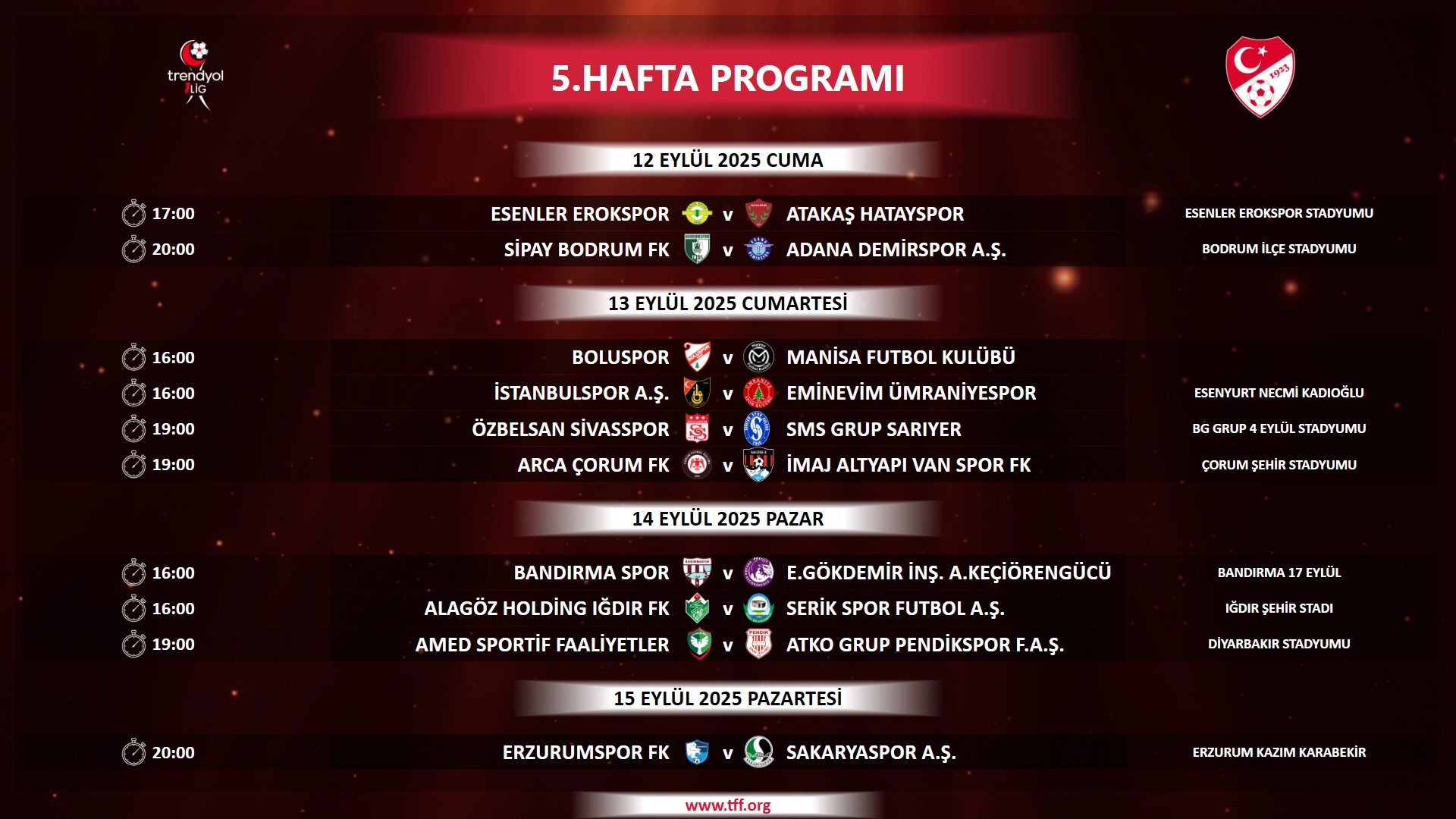 İşte Trendyol 1.Lig'de 5. hafta programı şu şekilde: