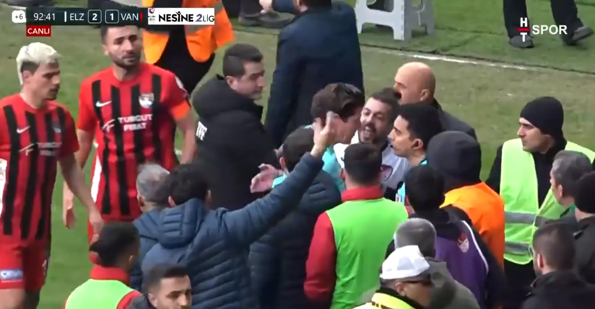 TFF 2. Lig Kırmızı Grup’un 21. haftasında oynanan Elazığspor-Vanspor FK karşılaşması, yalnız saha içindeki mücadeleyle değil, Elazığspor taraftarlarının sahaya inerek Vanspor FK futbolcularına saldırmasıyla da gündeme damga vurdu. Vanspor FK’nın 2-1 mağlup olduğu maçın ardından yaşanan olaylar, futbol adına utanç verici görüntülere sahne oldu.