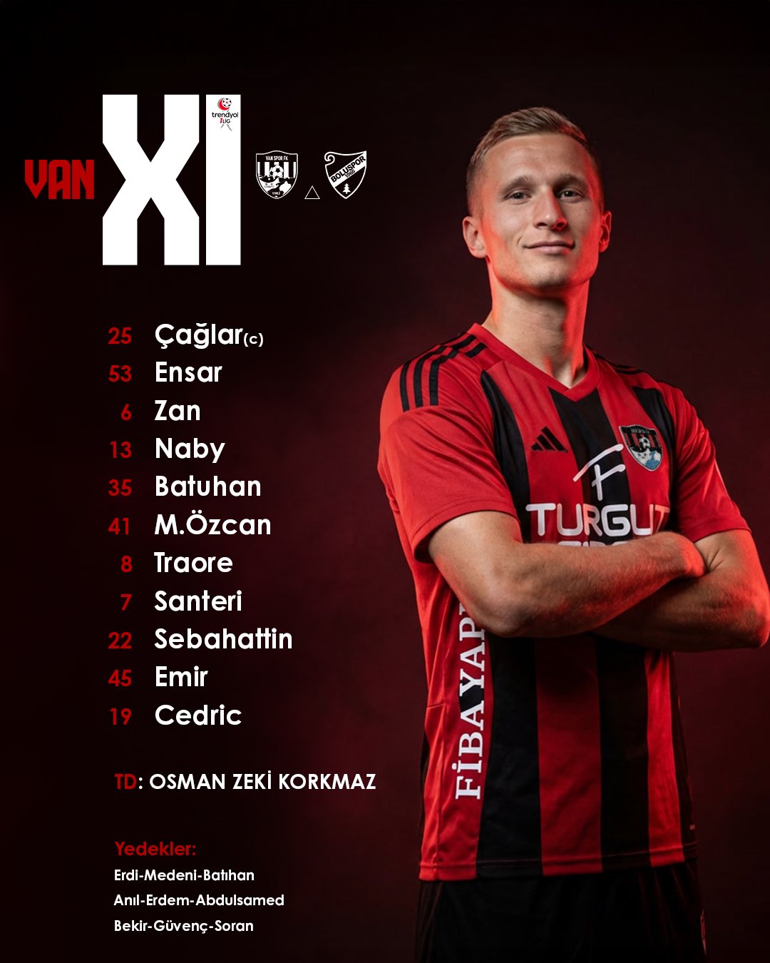 Trendyol 1.Lig'de devre Vanspor-Boluspor maçıyla açılıyor. Vanspor sahsında saat 14.30'da Boluspor'u konuk ediyor. Maçta her iki takımın sahaya çıkacağı ilk 11'lerde belli oldu.