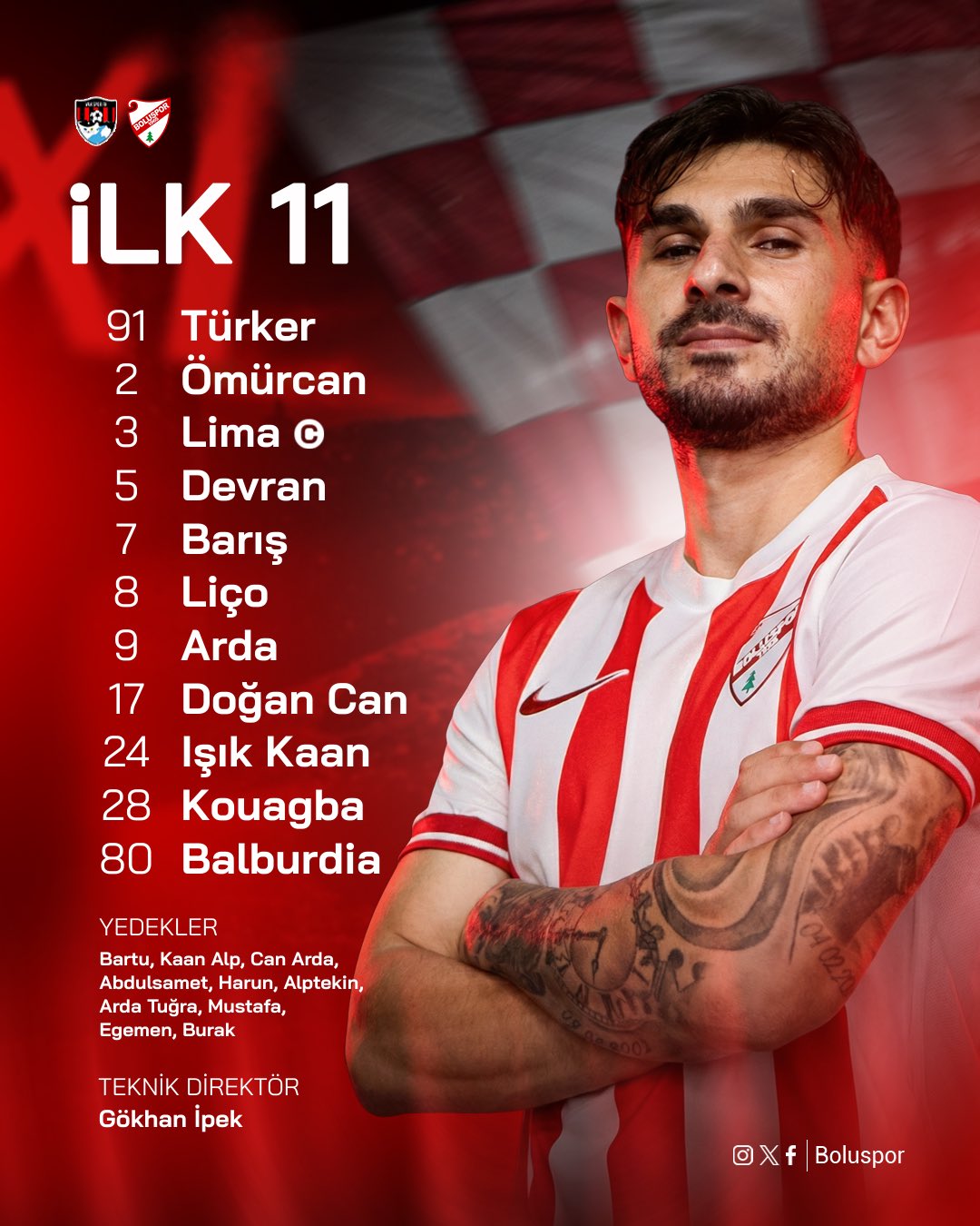 Boluspor'un Vanspor maçı ilk 11'i;
