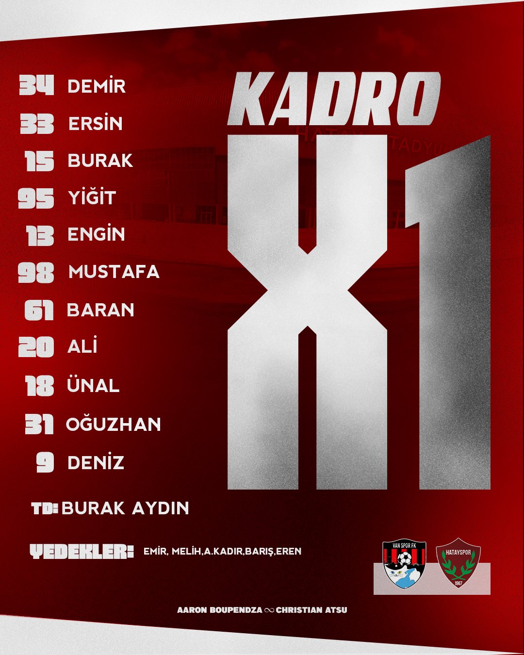 Hatayspor'un Vanspor maçı ilk 11'i;